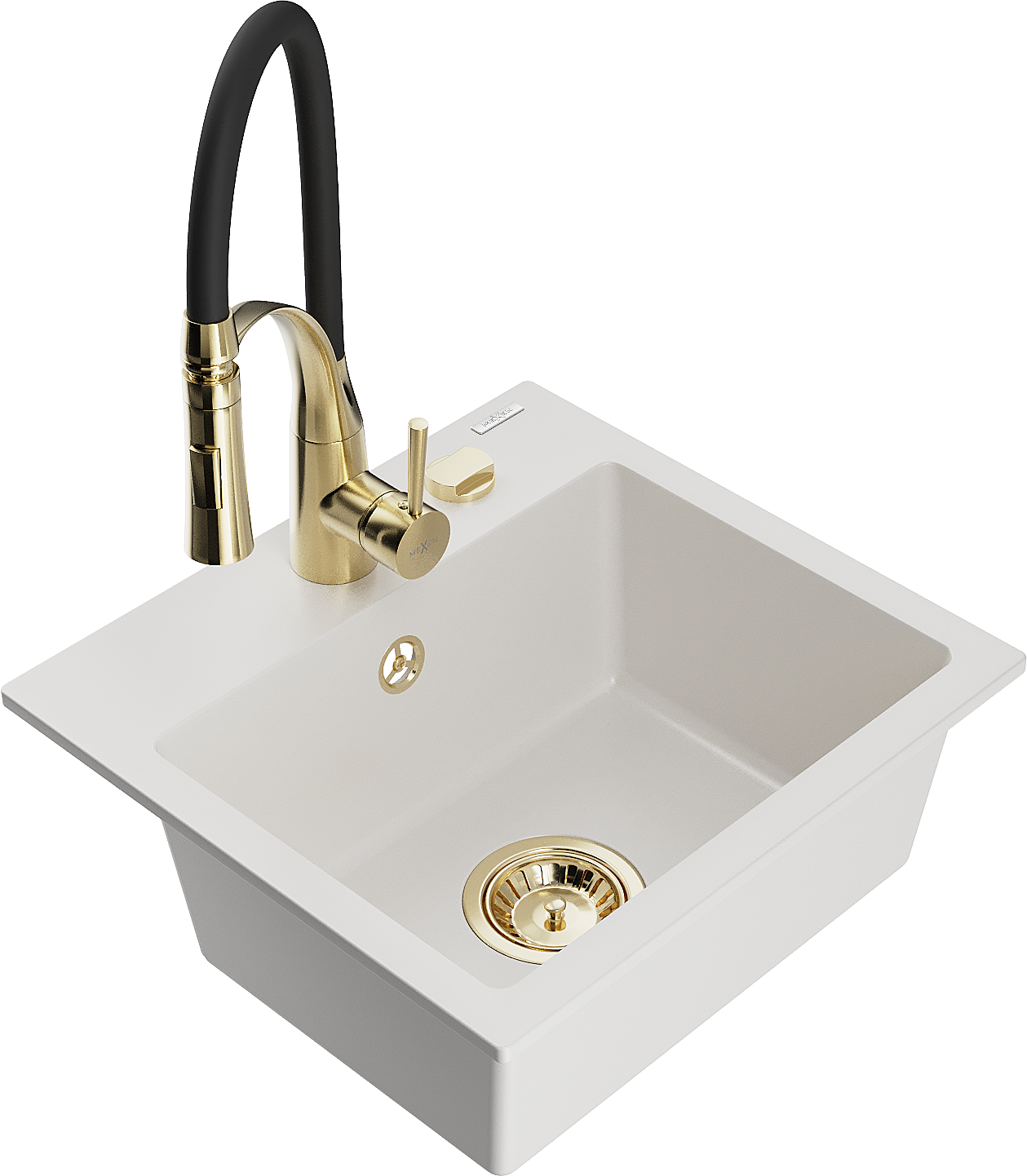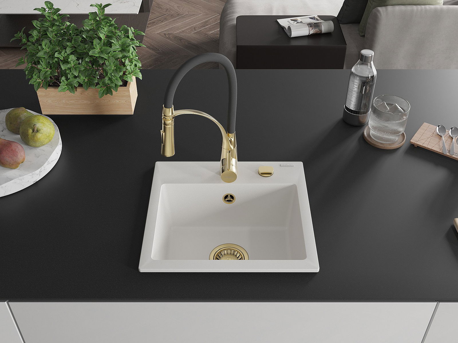 Mexen Milo zlewozmywak granitowy 1-komorowy z baterią kuchenną Aster, biały - 6505-20-73450-57-G