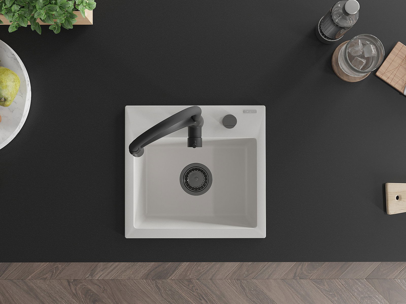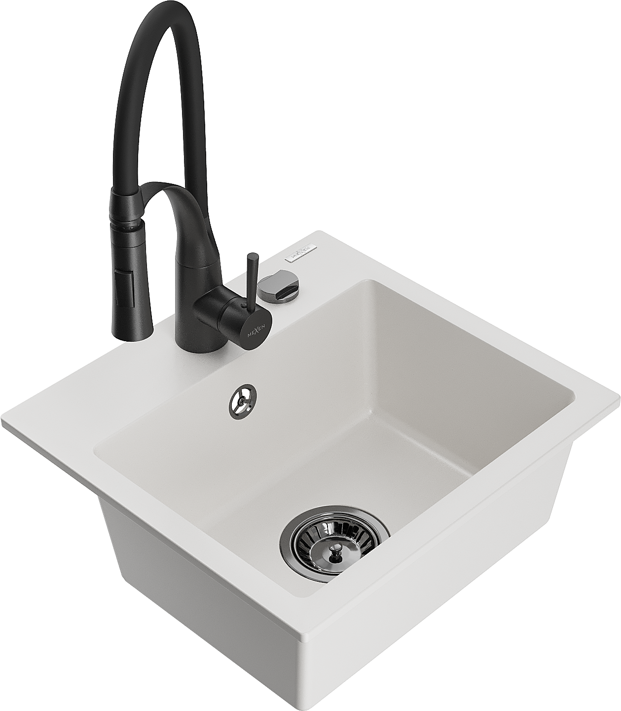 Mexen Milo zlewozmywak granitowy 1-komorowy z baterią kuchenną Aster, biały - 6505-20-73450-70-B