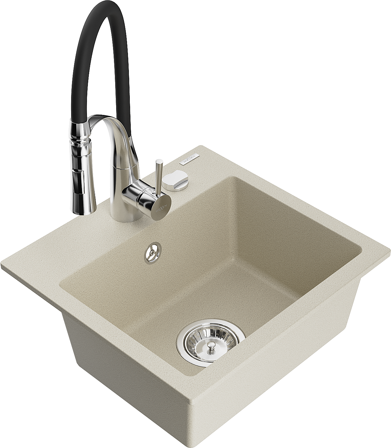 Mexen Milo zlewozmywak granitowy 1-komorowy z baterią kuchenną Aster, beżowy - 6505-69-73450-07