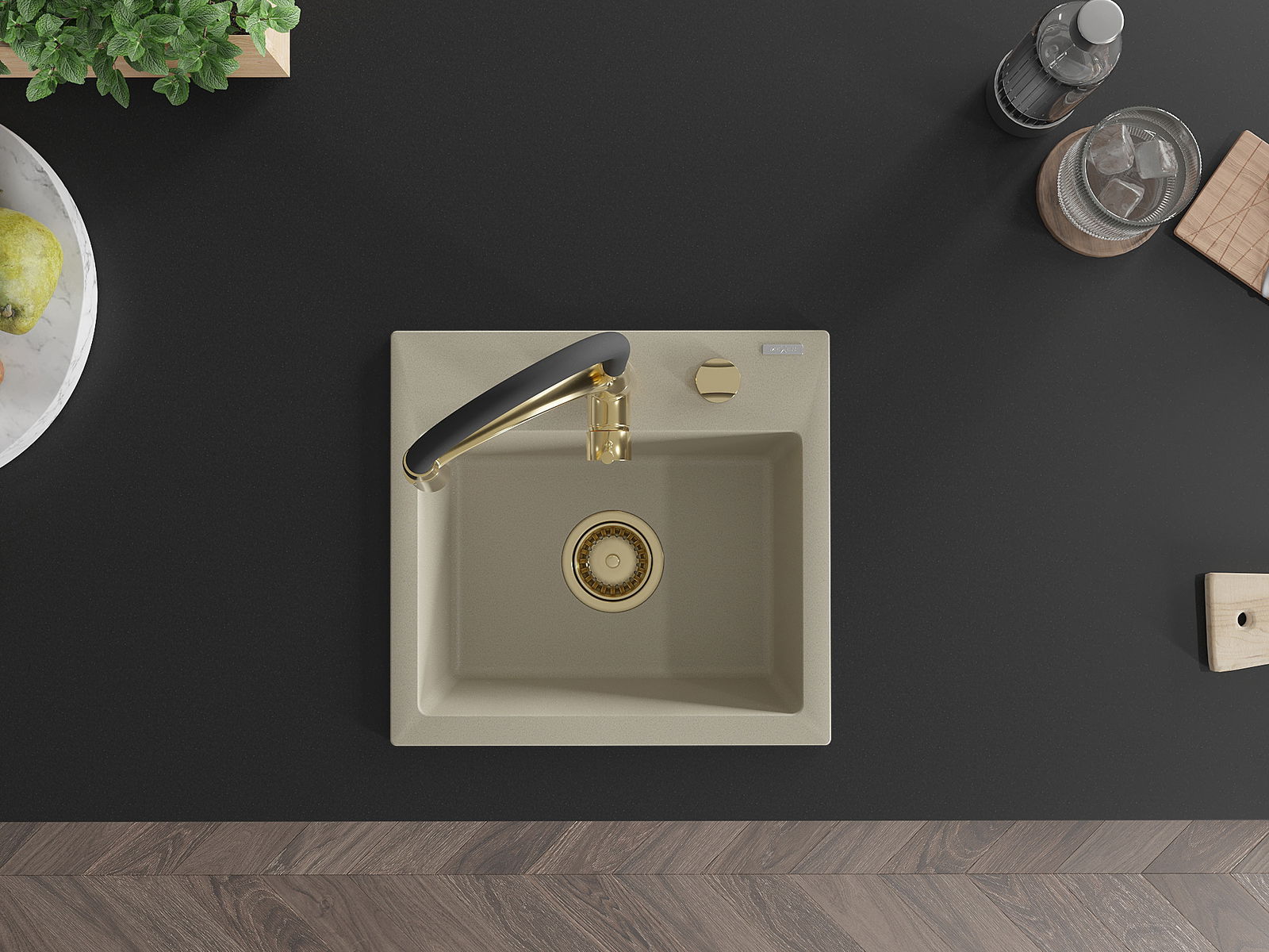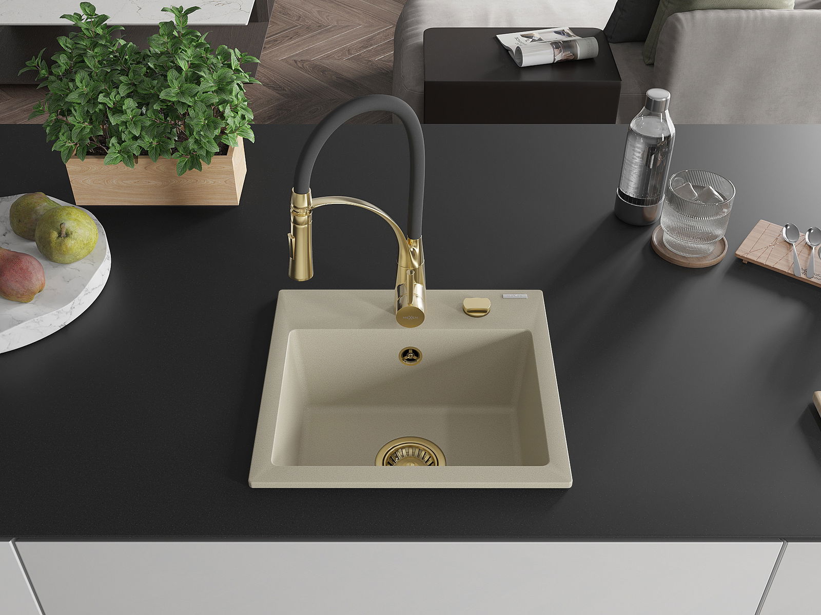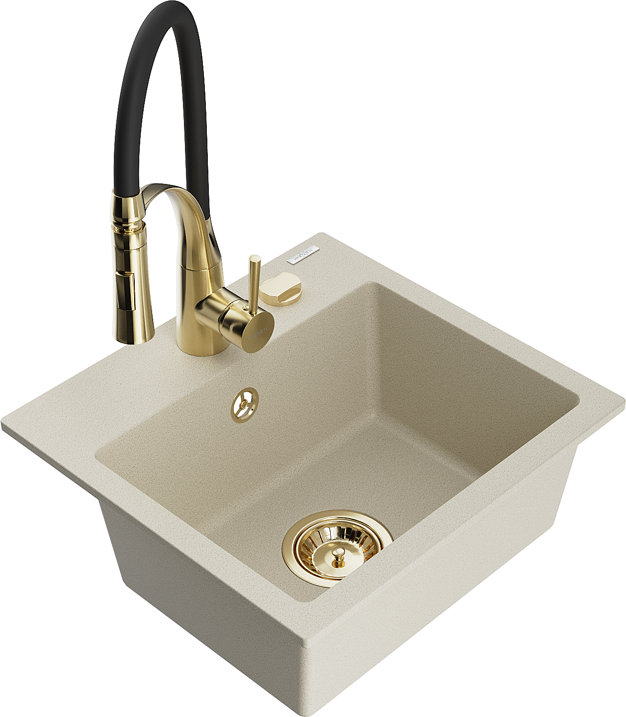 Mexen Milo zlewozmywak granitowy 1-komorowy z baterią kuchenną Aster, beżowy - 6505-69-73450-57-G