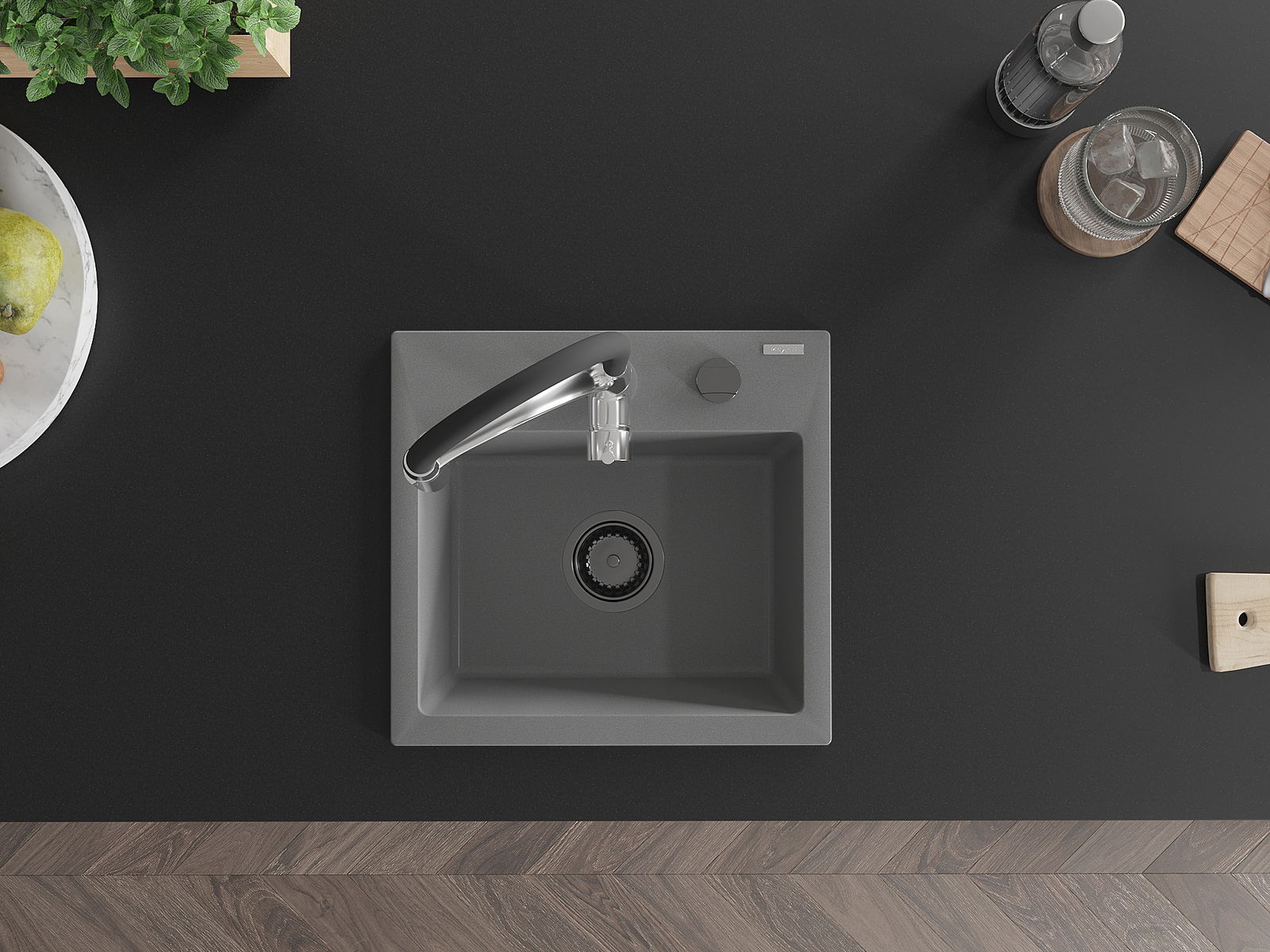 Mexen Milo zlewozmywak granitowy 1-komorowy z baterią kuchenną Aster, szary - 6505-71-73450-07-B