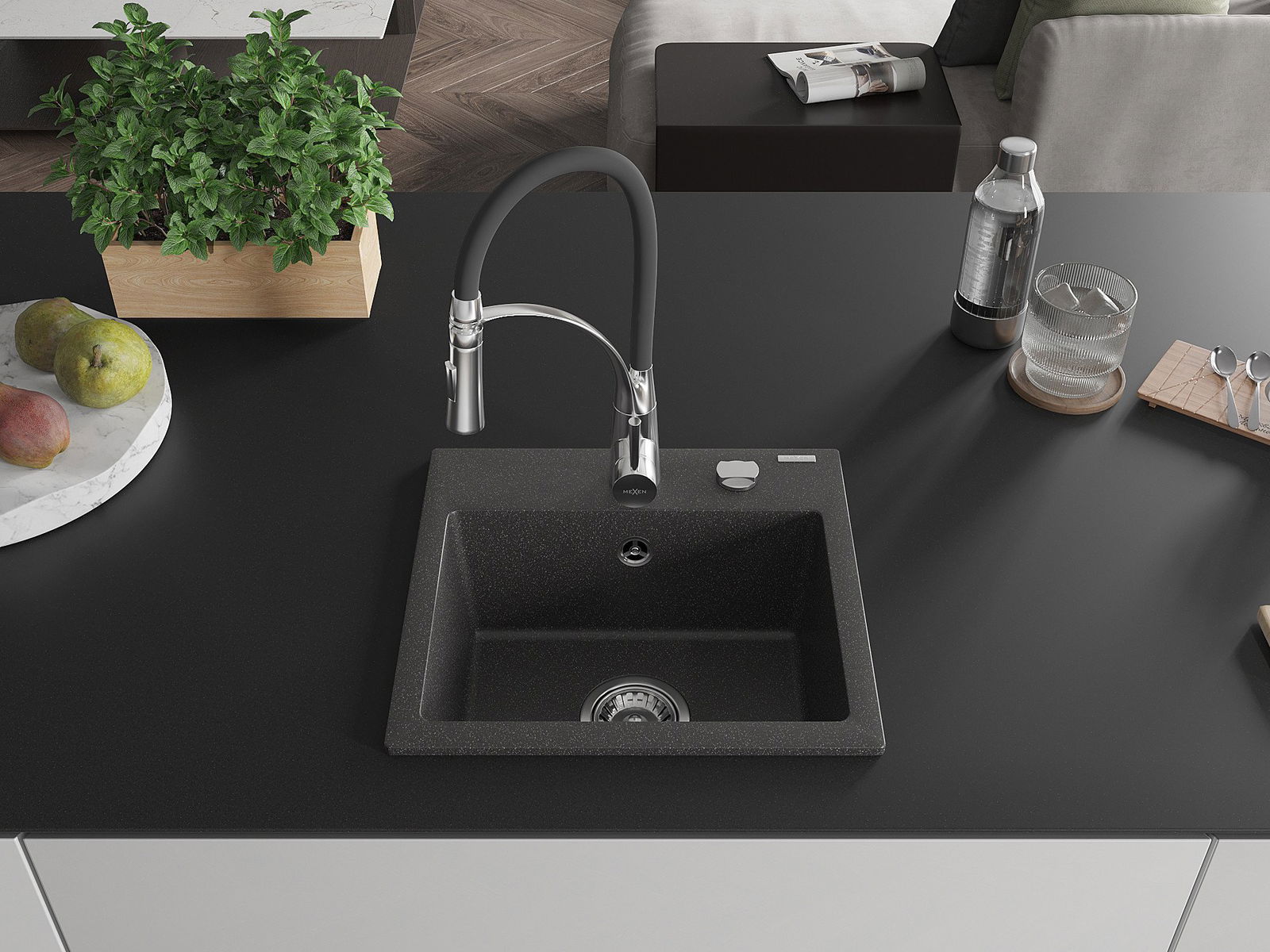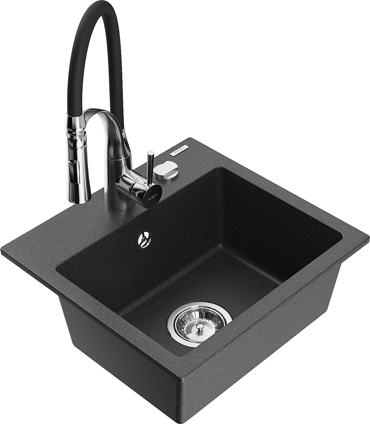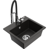 Mexen Milo zlewozmywak granitowy 1-komorowy z baterią kuchenną Aster, czarny nakrapiany - 6505-76-73450-07