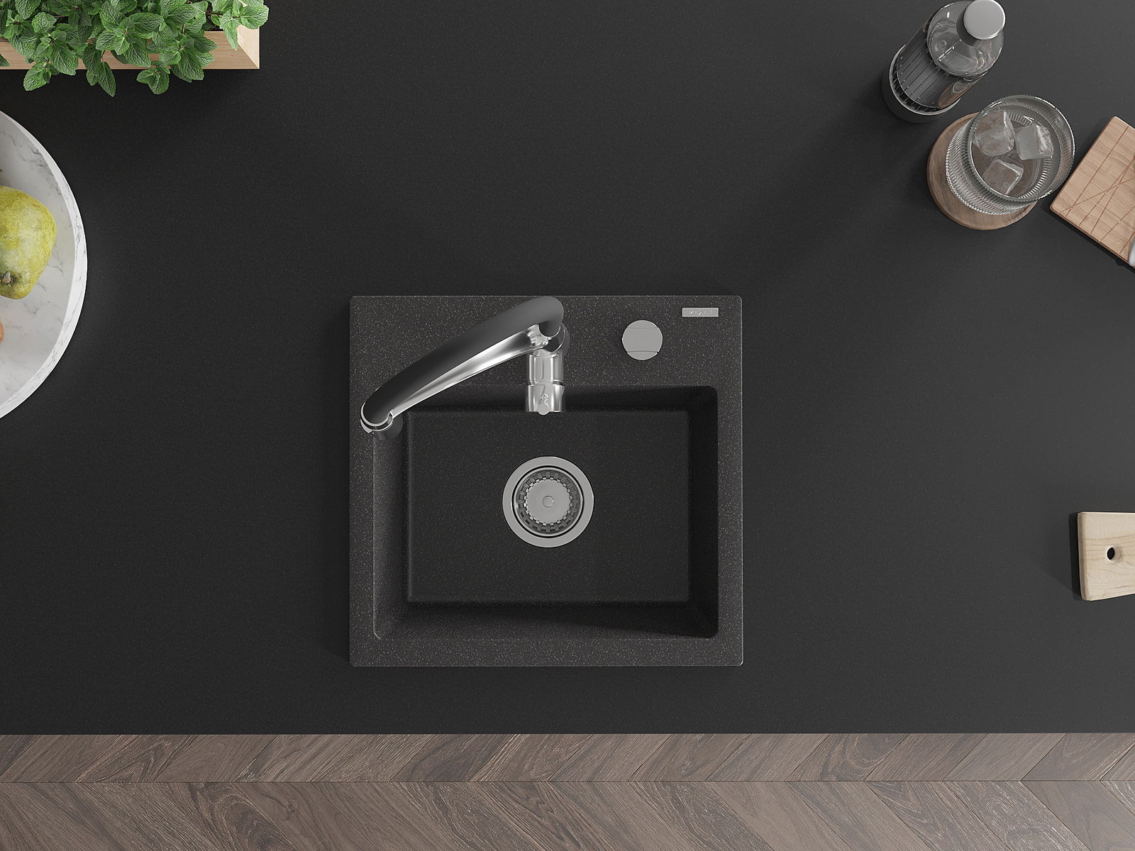 Zlew posiada podfrezowany otwór o średnicy 35 mm do samodzielnego wybicia. Można go wykorzystać m.in. do montażu dozownika na płyn, który wyeliminuje obecność plastikowych butelek w kuchni i nada jej eleganckiego wykończenia.