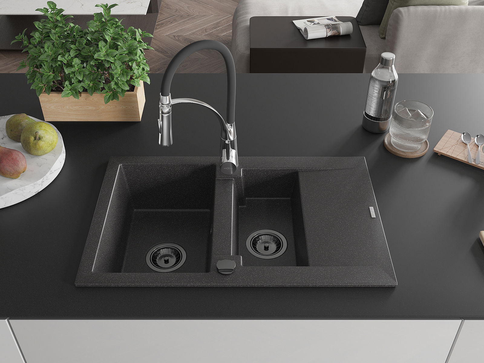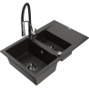 Mexen Gaspar zlewozmywak granitowy 1,5-komorowy z ociekaczem i baterią kuchenną Aster, czarny nakrapiany - 6507-76-73450-07-B