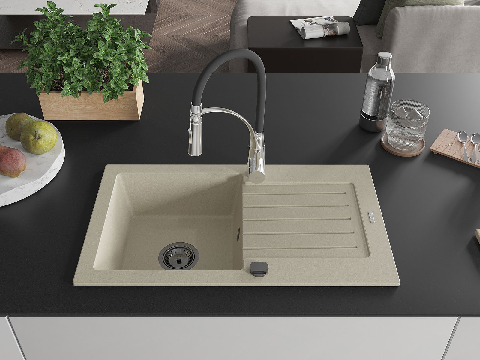 Zlewozmywak został wykonany z wysokiej jakości granitu. Stanowi eleganckie, a przede wszystkim praktyczne uzupełnienie każdej kuchni, niezależnie od jej stylu. Wysoka jakość oraz trwałość granitu zapewniają wieloletnie użytkowanie.