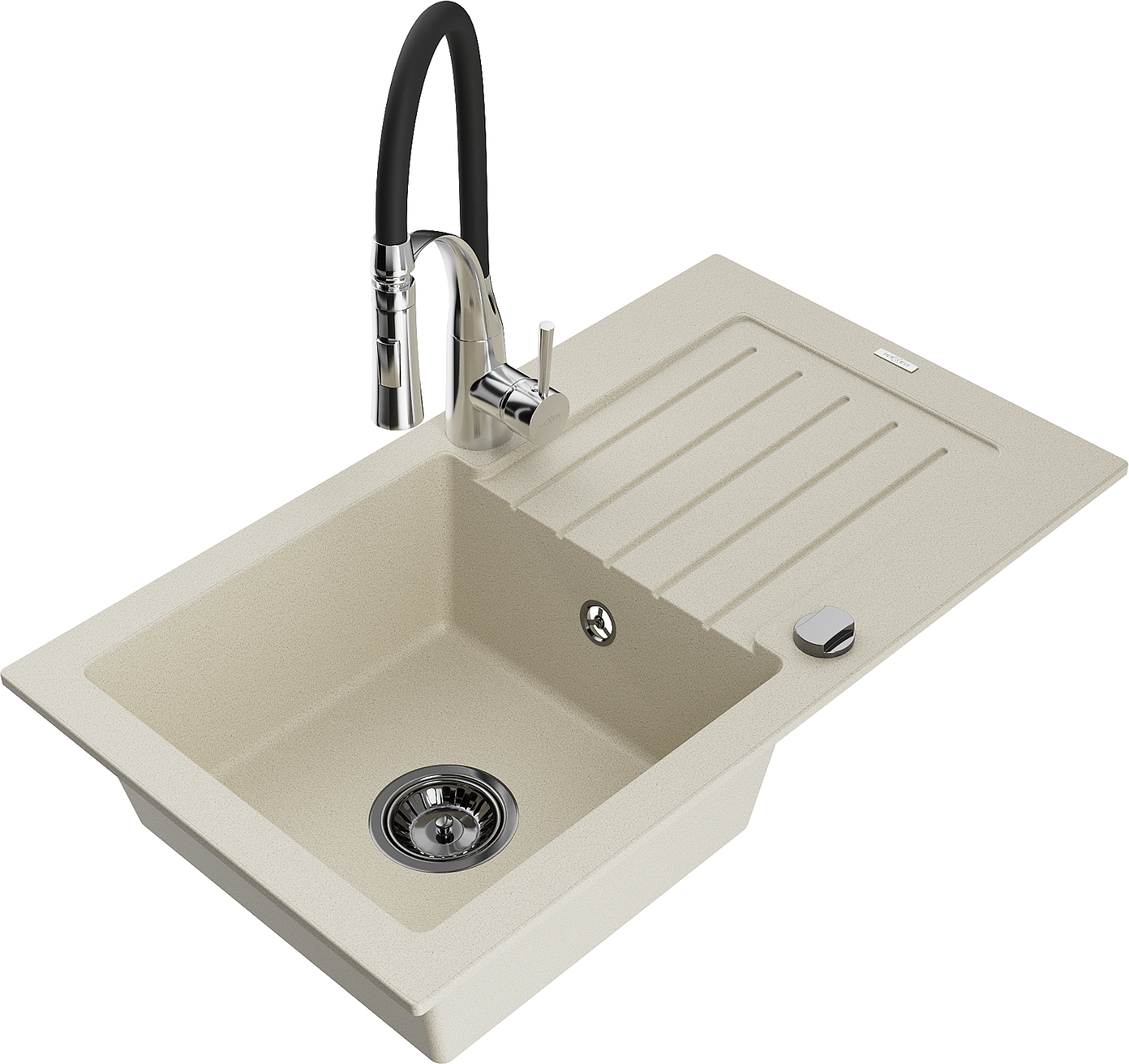 Mexen Pablo zlewozmywak granitowy 1-komorowy z ociekaczem i baterią kuchenną Aster, beżowy - 6510-69-73450-07-B