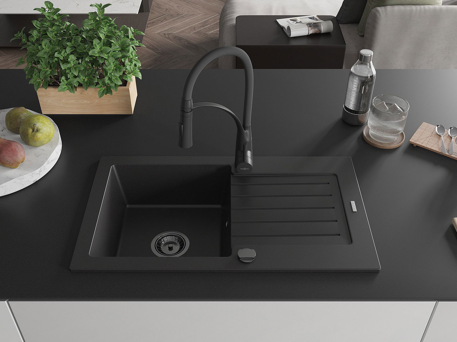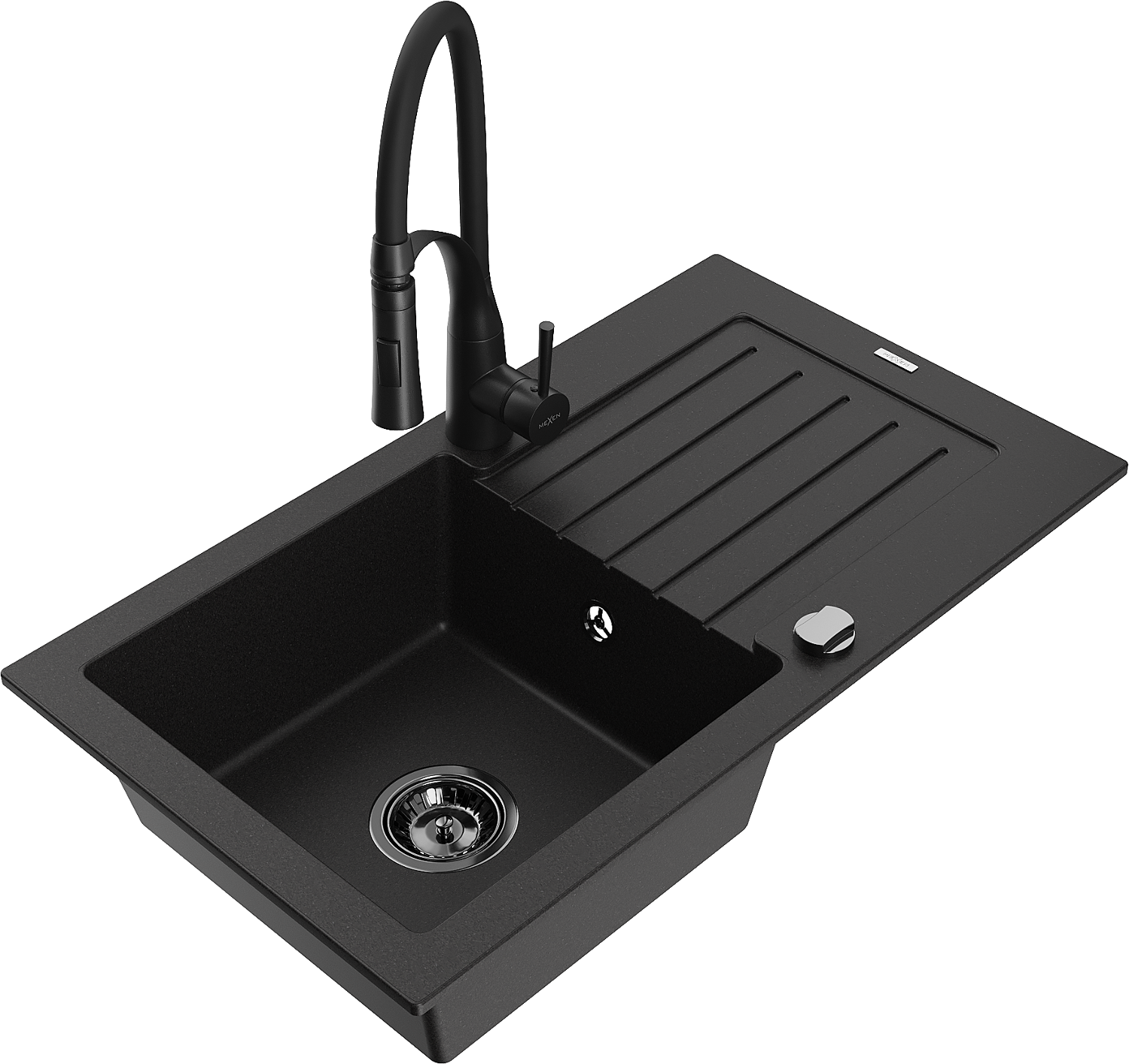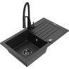 Mexen Pablo zlewozmywak granitowy 1-komorowy z ociekaczem i baterią kuchenną Aster, czarny - 6510-77-73450-70-B