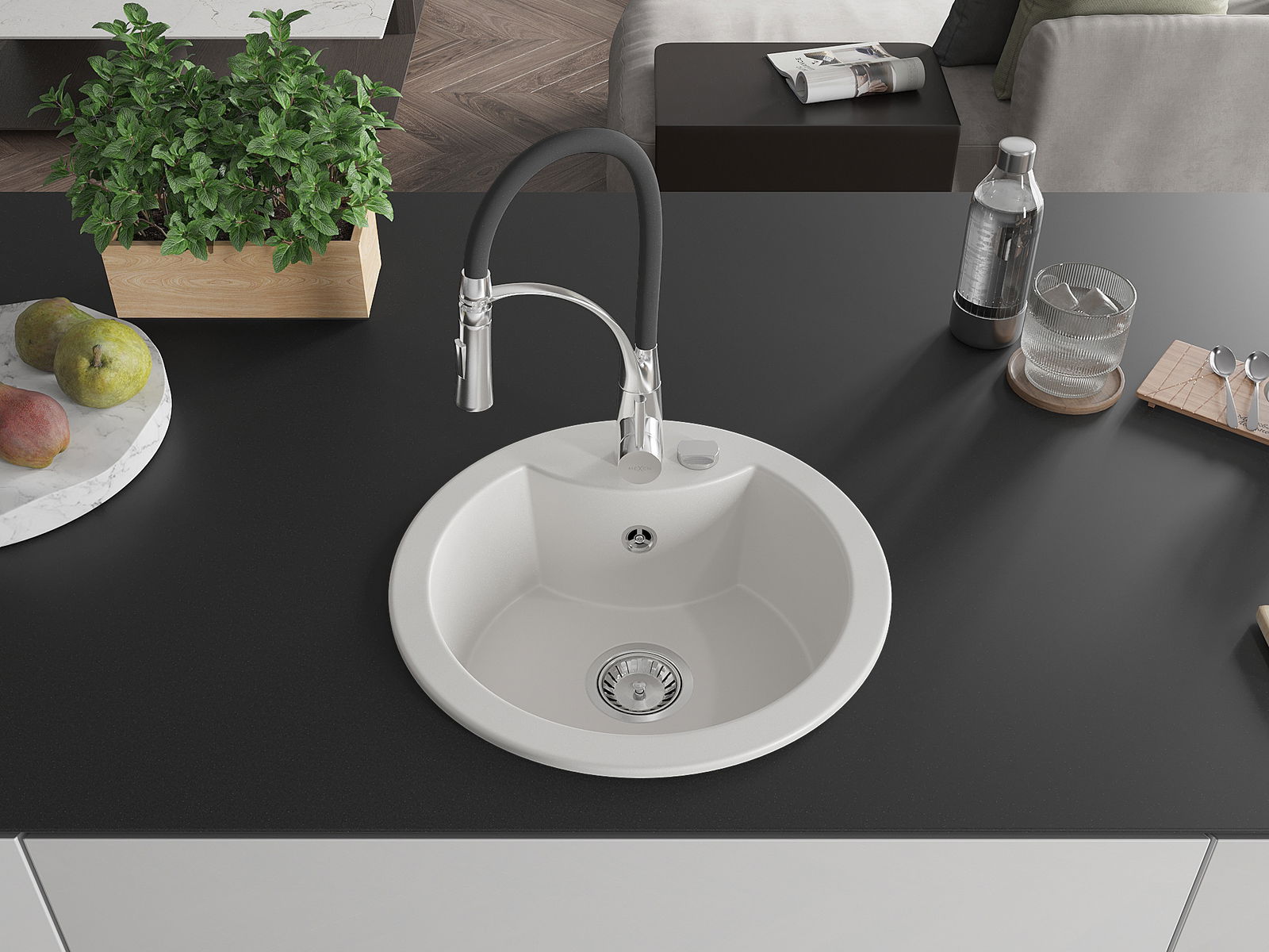 Zlewozmywak został wykonany z wysokiej jakości granitu. Stanowi eleganckie, a przede wszystkim praktyczne uzupełnienie każdej kuchni, niezależnie od jej stylu. Wysoka jakość oraz trwałość granitu zapewniają wieloletnie użytkowanie.