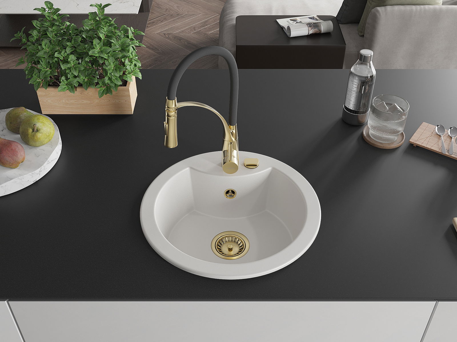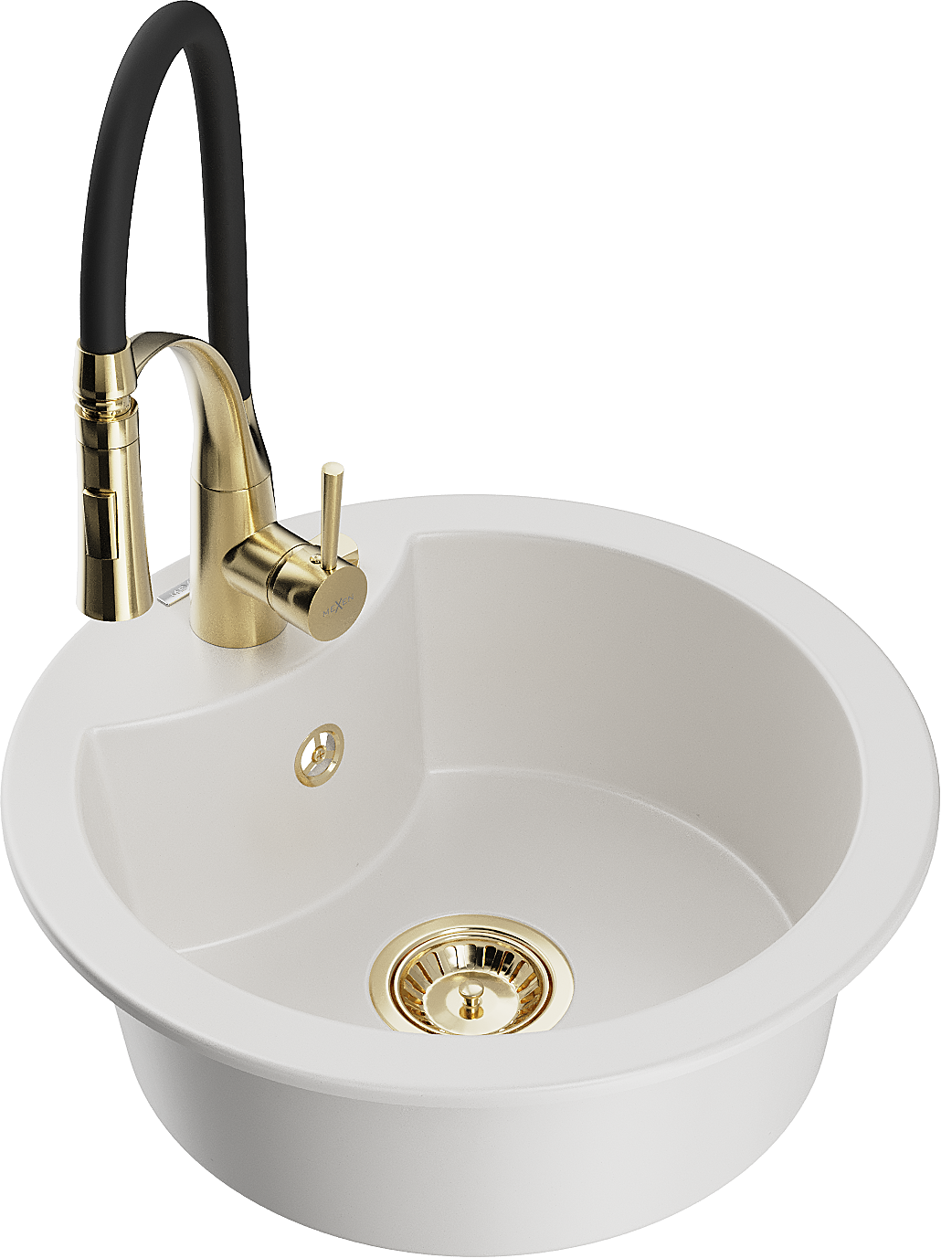 Mexen Diego zlewozmywak granitowy 1-komorowy z baterią kuchenną Aster, biały - 6512-20-73450-57-G