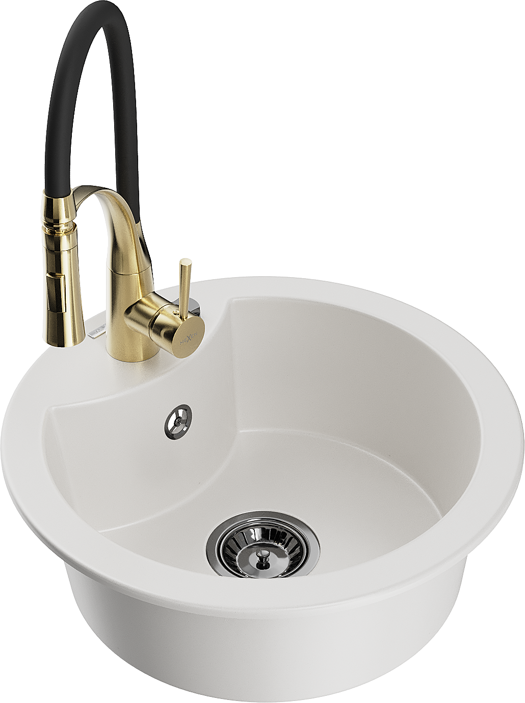 Mexen Diego zlewozmywak granitowy 1-komorowy z baterią kuchenną Aster, biały - 6512-20-73450-57-B