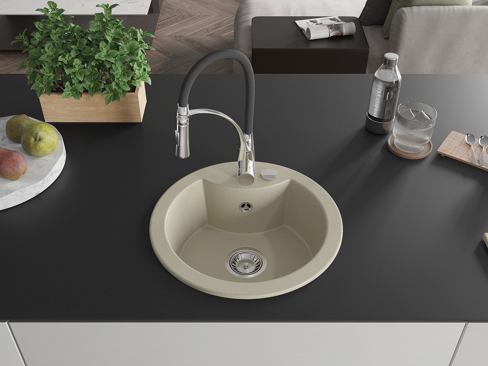 Zlewozmywak został wykonany z wysokiej jakości granitu. Stanowi eleganckie, a przede wszystkim praktyczne uzupełnienie każdej kuchni, niezależnie od jej stylu. Wysoka jakość oraz trwałość granitu zapewniają wieloletnie użytkowanie.