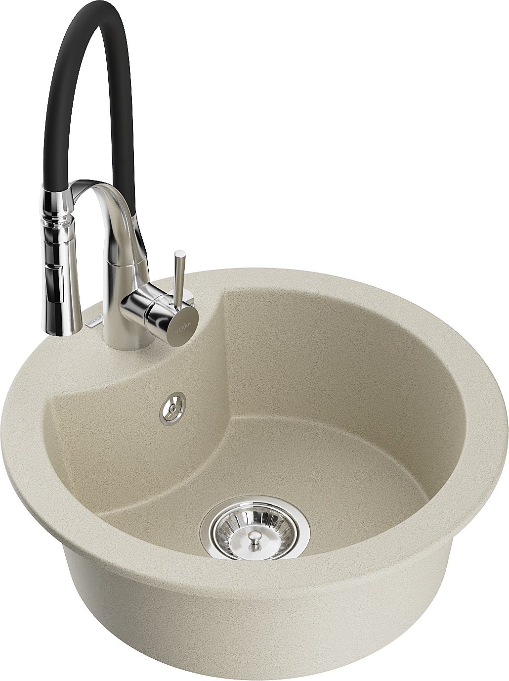 Mexen Diego zlewozmywak granitowy 1-komorowy z baterią kuchenną Aster, beżowy - 6512-69-73450-07