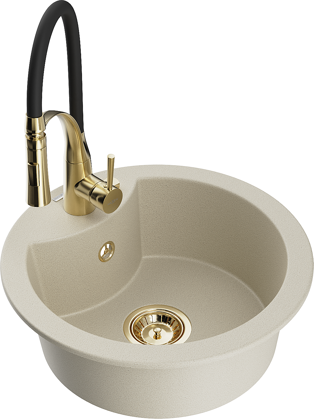 Mexen Diego zlewozmywak granitowy 1-komorowy z baterią kuchenną Aster, beżowy - 6512-69-73450-57-G