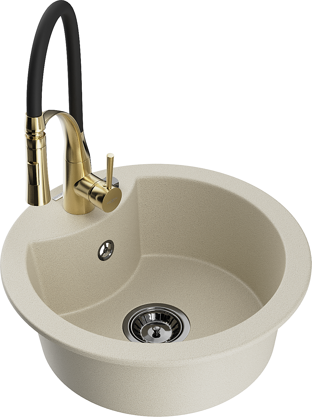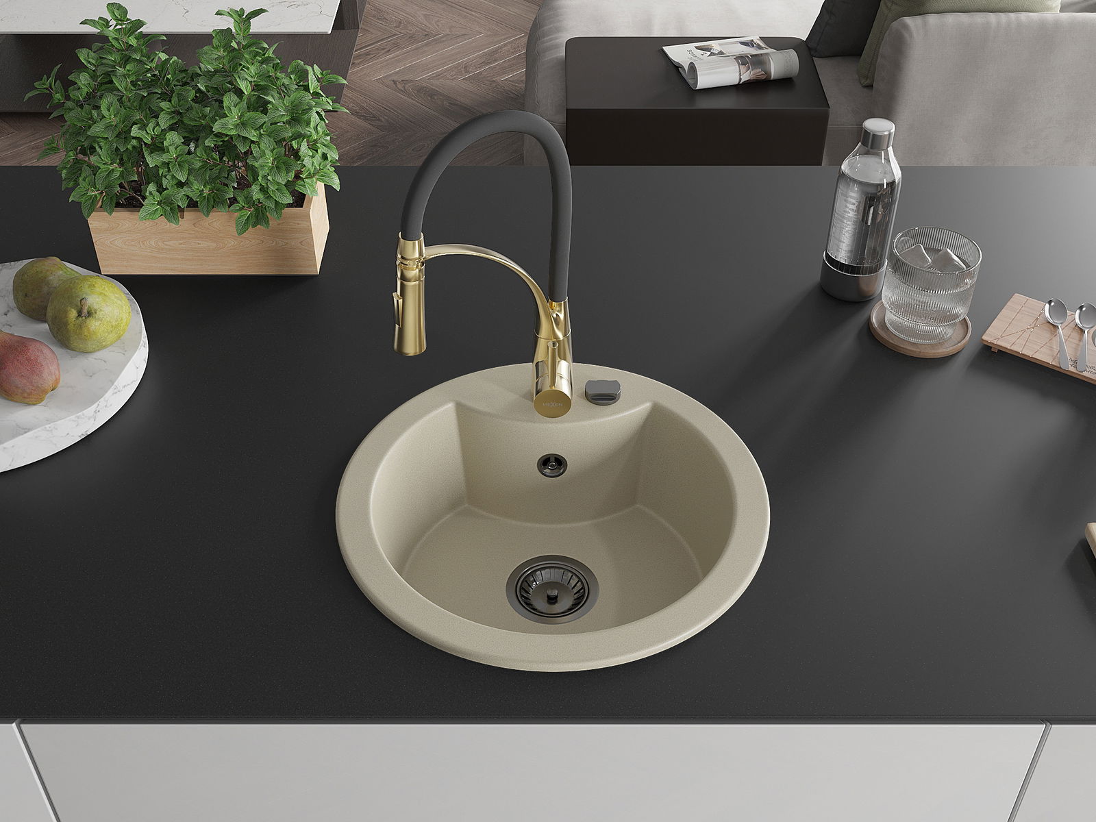 Mexen Diego zlewozmywak granitowy 1-komorowy z baterią kuchenną Aster, beżowy - 6512-69-73450-57-B
