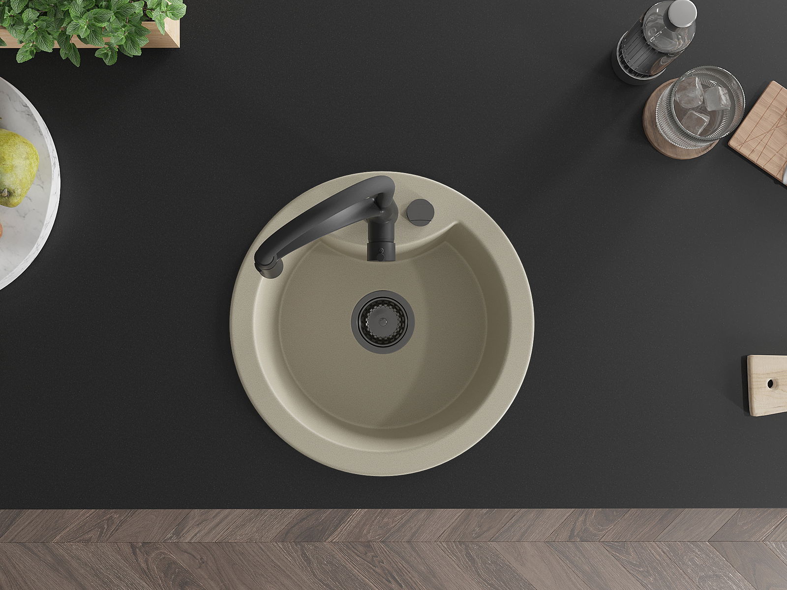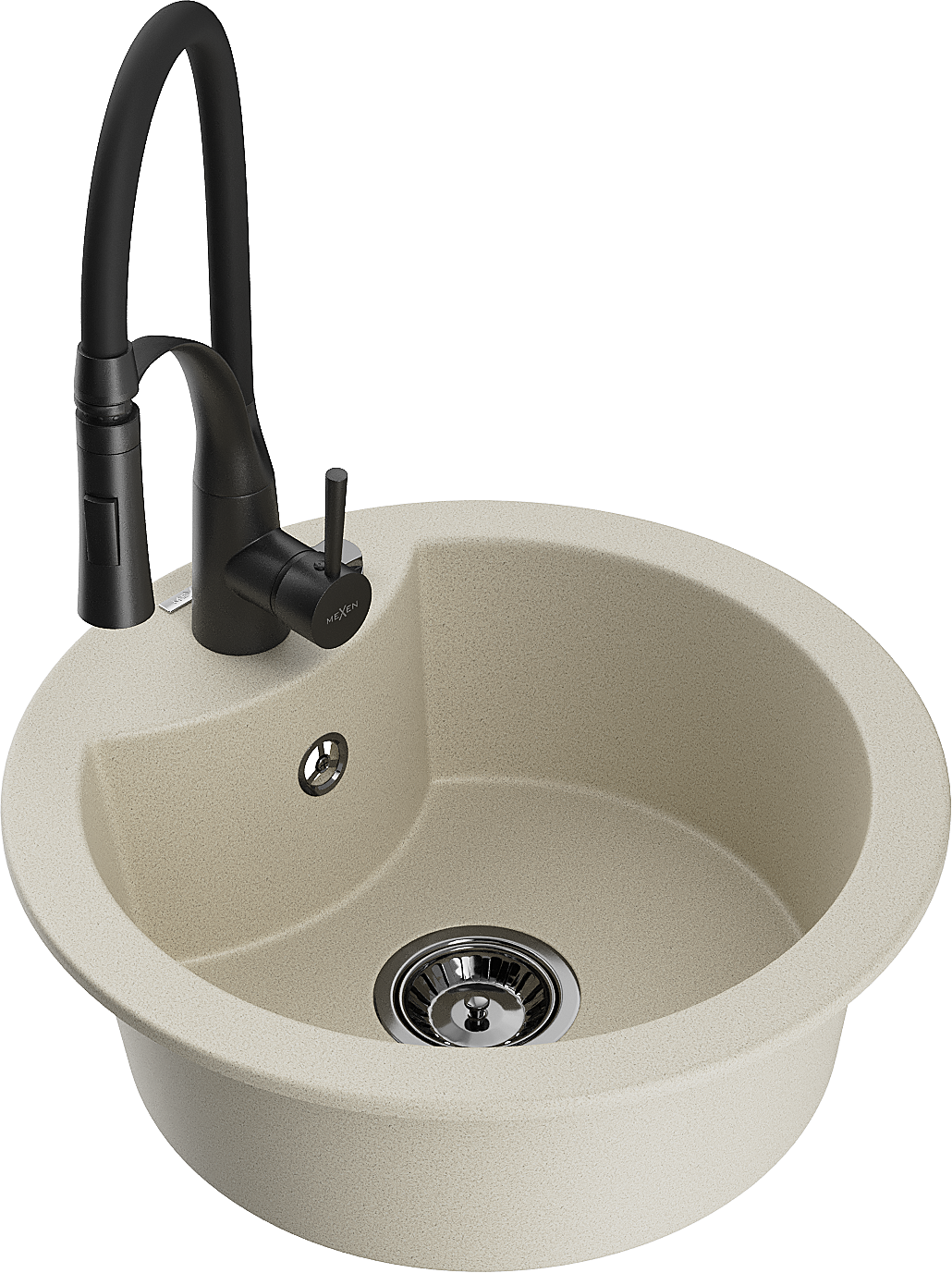 Mexen Diego zlewozmywak granitowy 1-komorowy z baterią kuchenną Aster, beżowy - 6512-69-73450-70-B