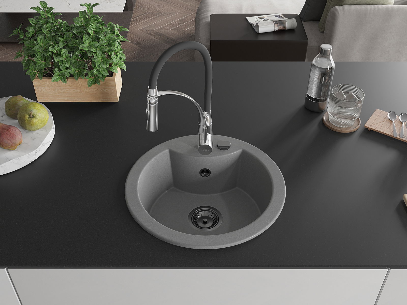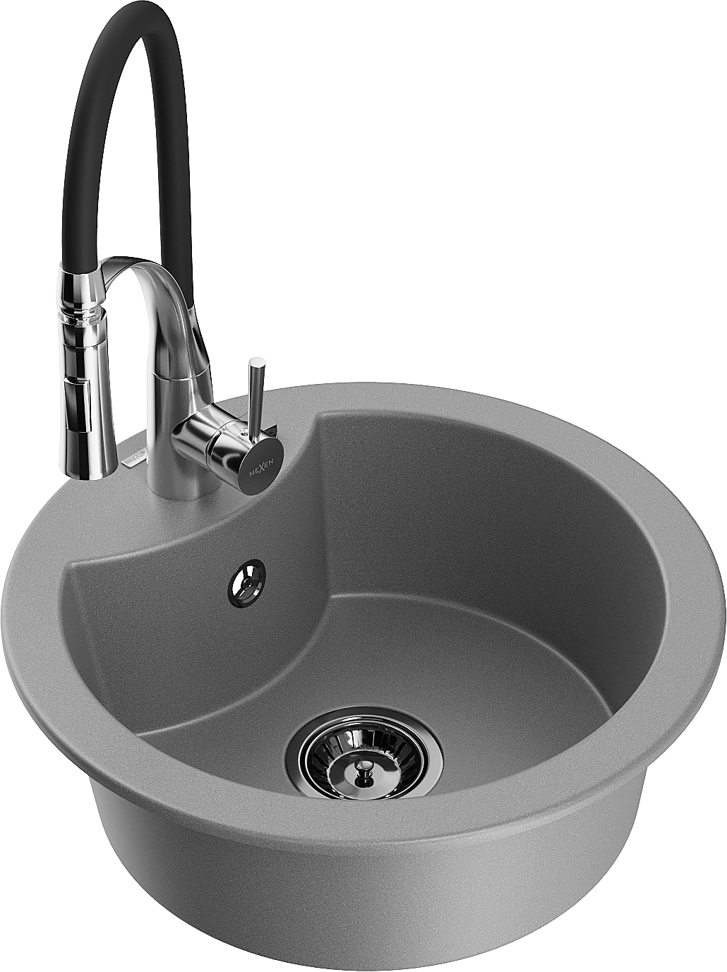 Mexen Diego zlewozmywak granitowy 1-komorowy z baterią kuchenną Aster, szary - 6512-71-73450-07-B