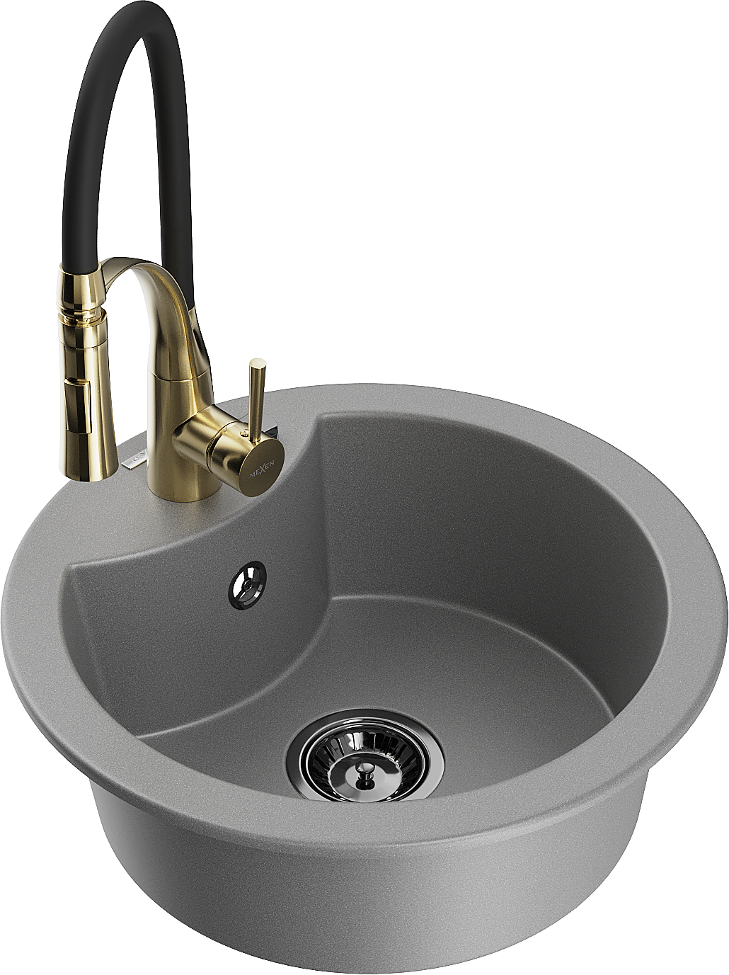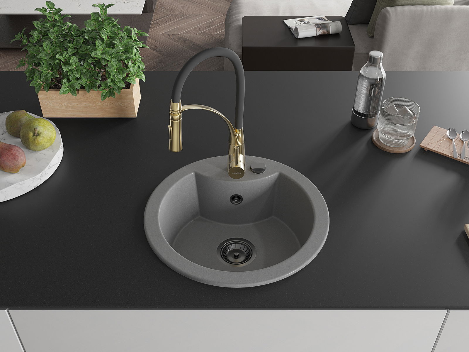 Mexen Diego zlewozmywak granitowy 1-komorowy z baterią kuchenną Aster, szary - 6512-71-73450-57-B