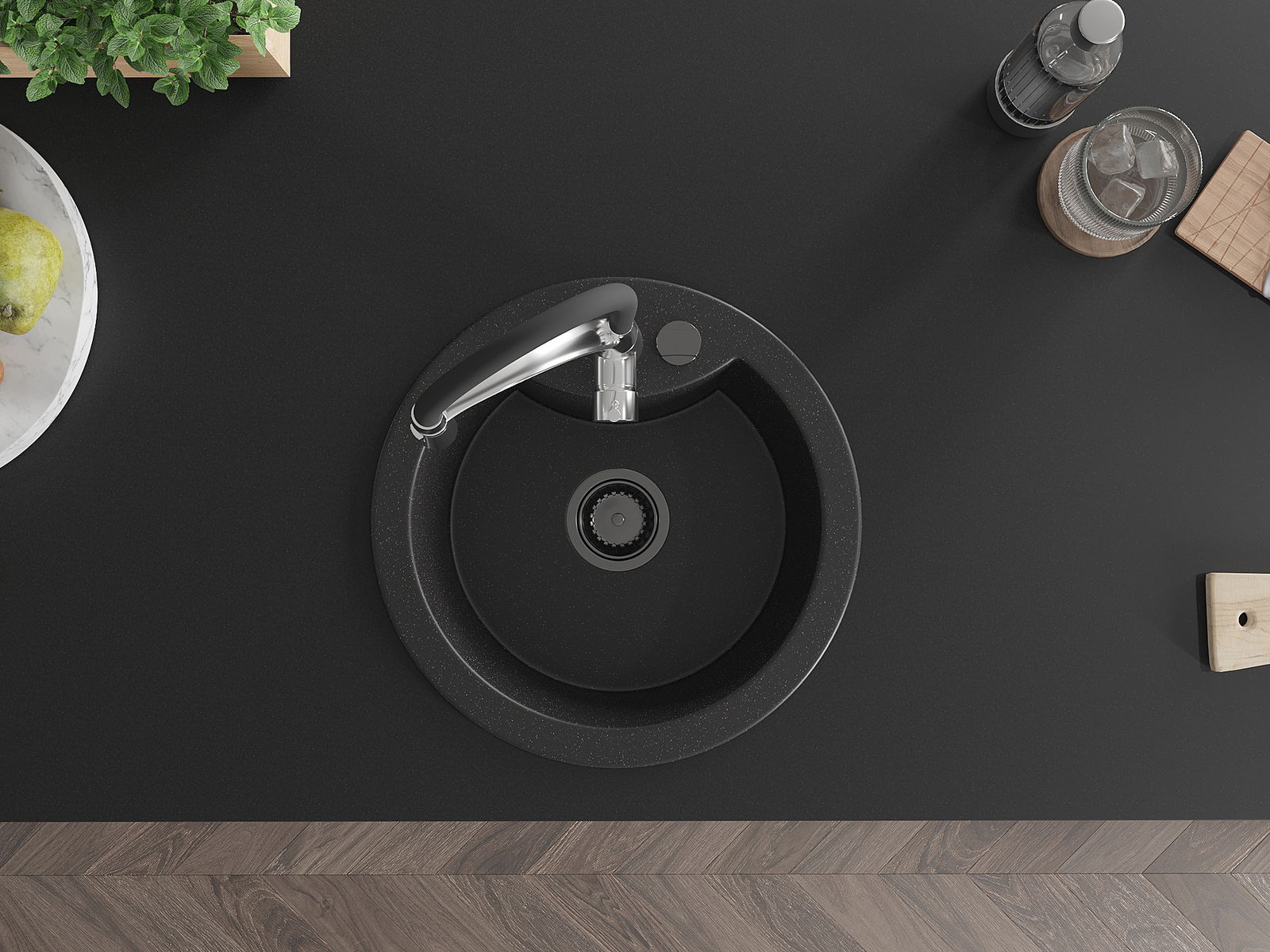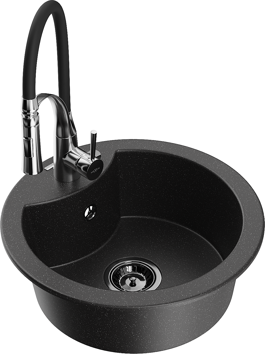 Mexen Diego zlewozmywak granitowy 1-komorowy z baterią kuchenną Aster, czarny/srebrny metalik - 6512-73-73450-07-B