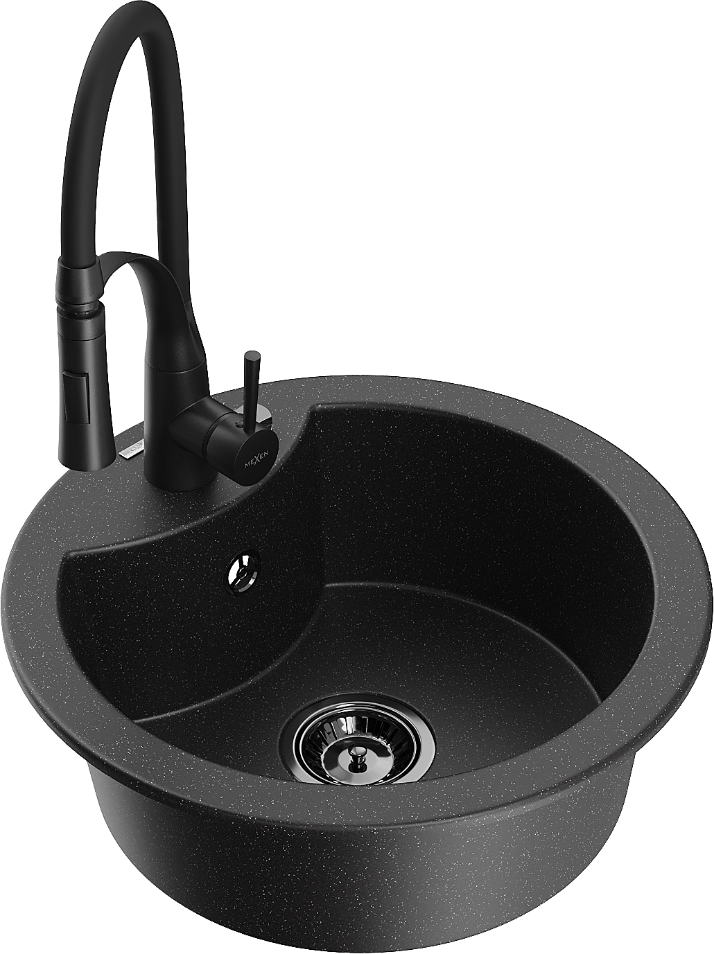 Mexen Diego zlewozmywak granitowy 1-komorowy z baterią kuchenną Aster, czarny/srebrny metalik - 6512-73-73450-70-B