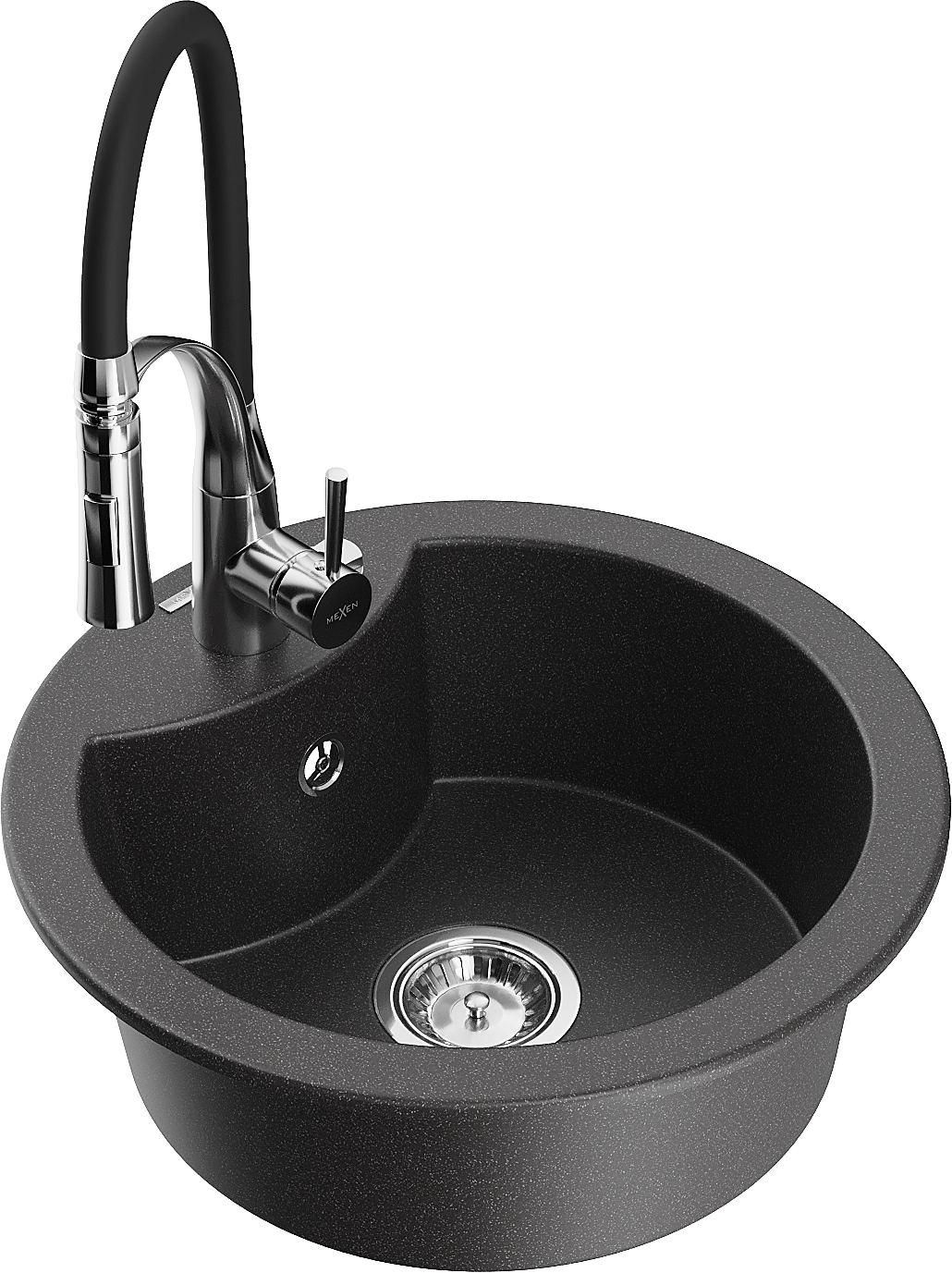Mexen Diego zlewozmywak granitowy 1-komorowy z baterią kuchenną Aster, czarny nakrapiany - 6512-76-73450-07
