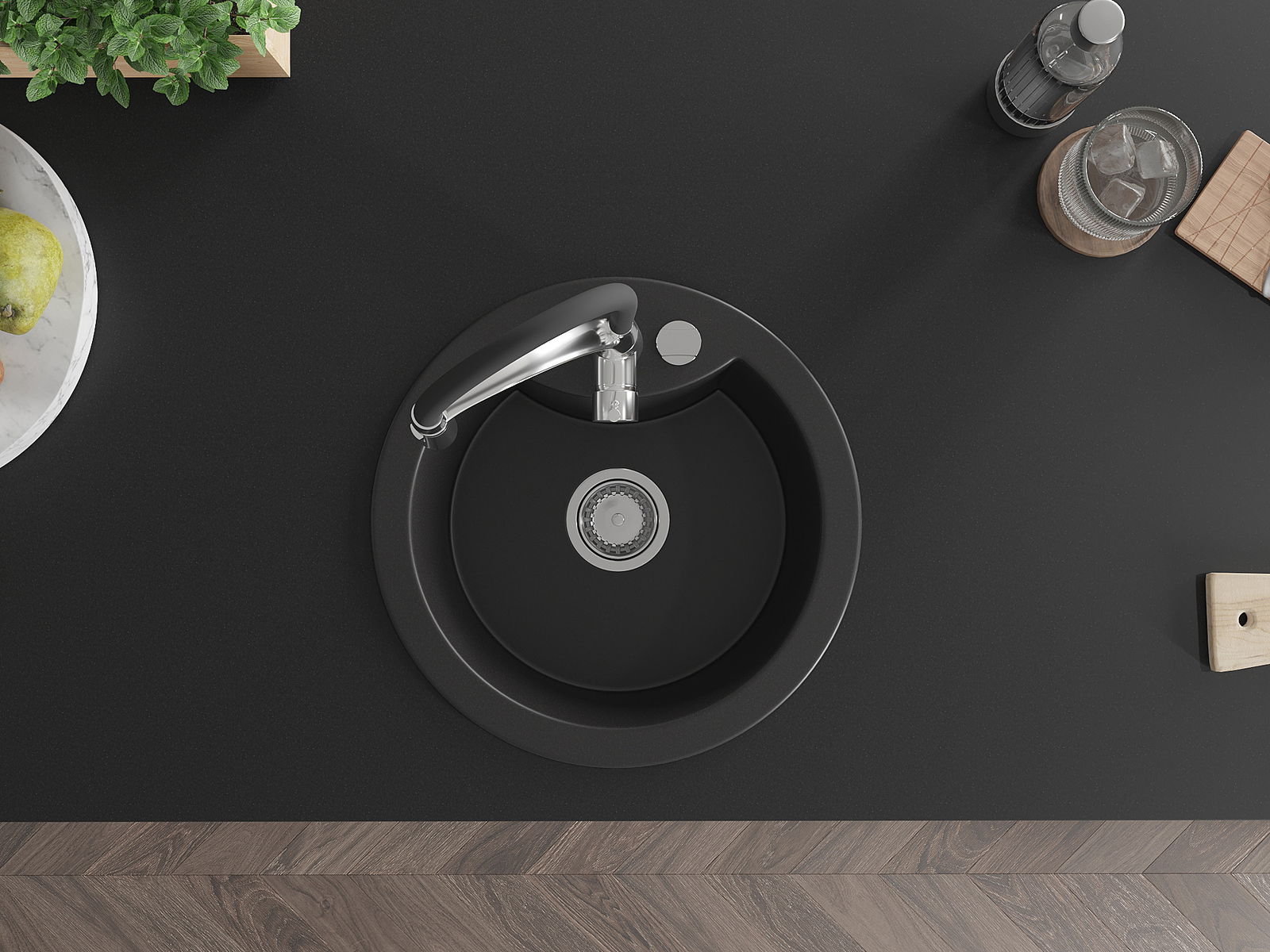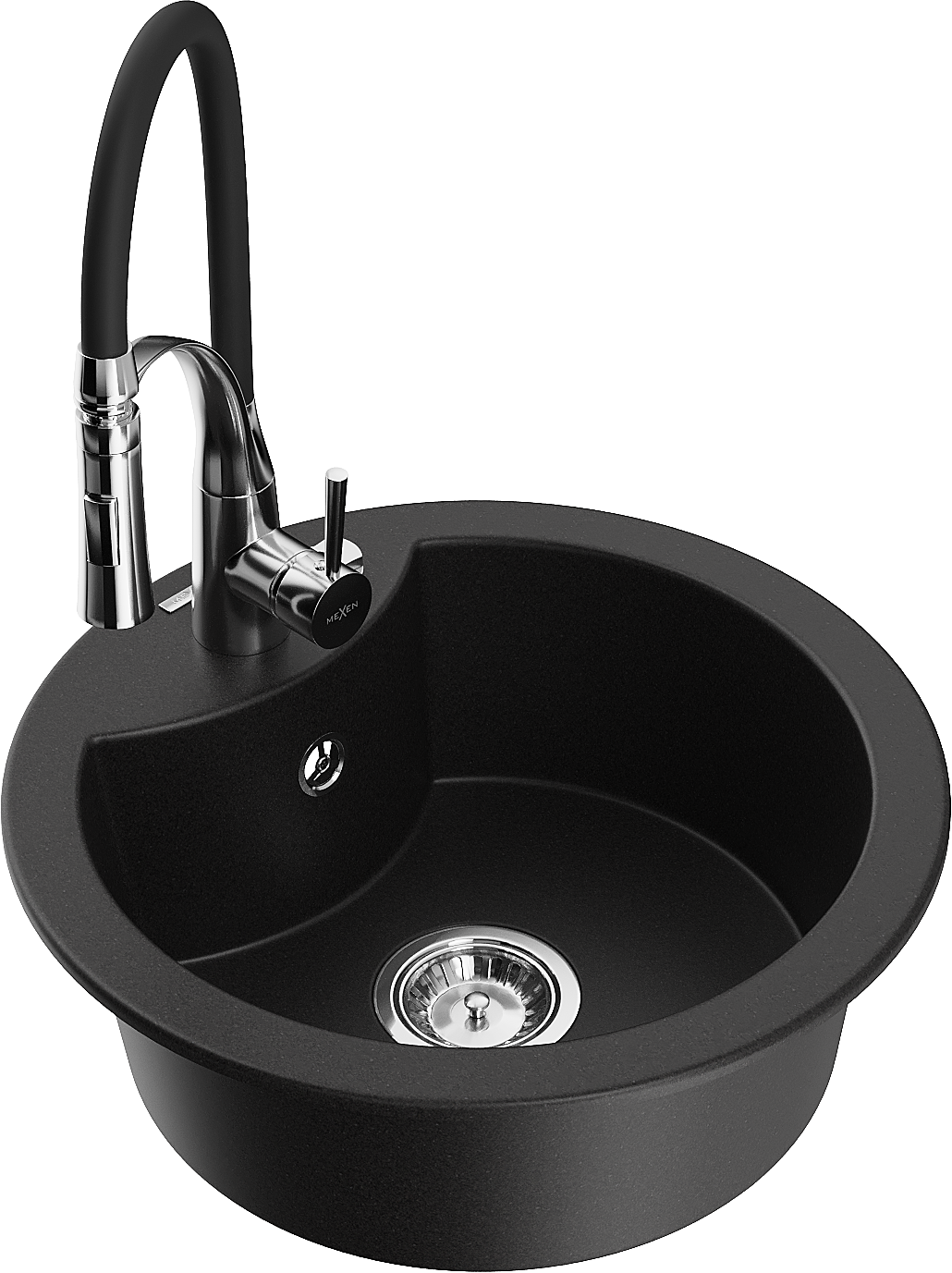 Mexen Diego zlewozmywak granitowy 1-komorowy z baterią kuchenną Aster, czarny - 6512-77-73450-07