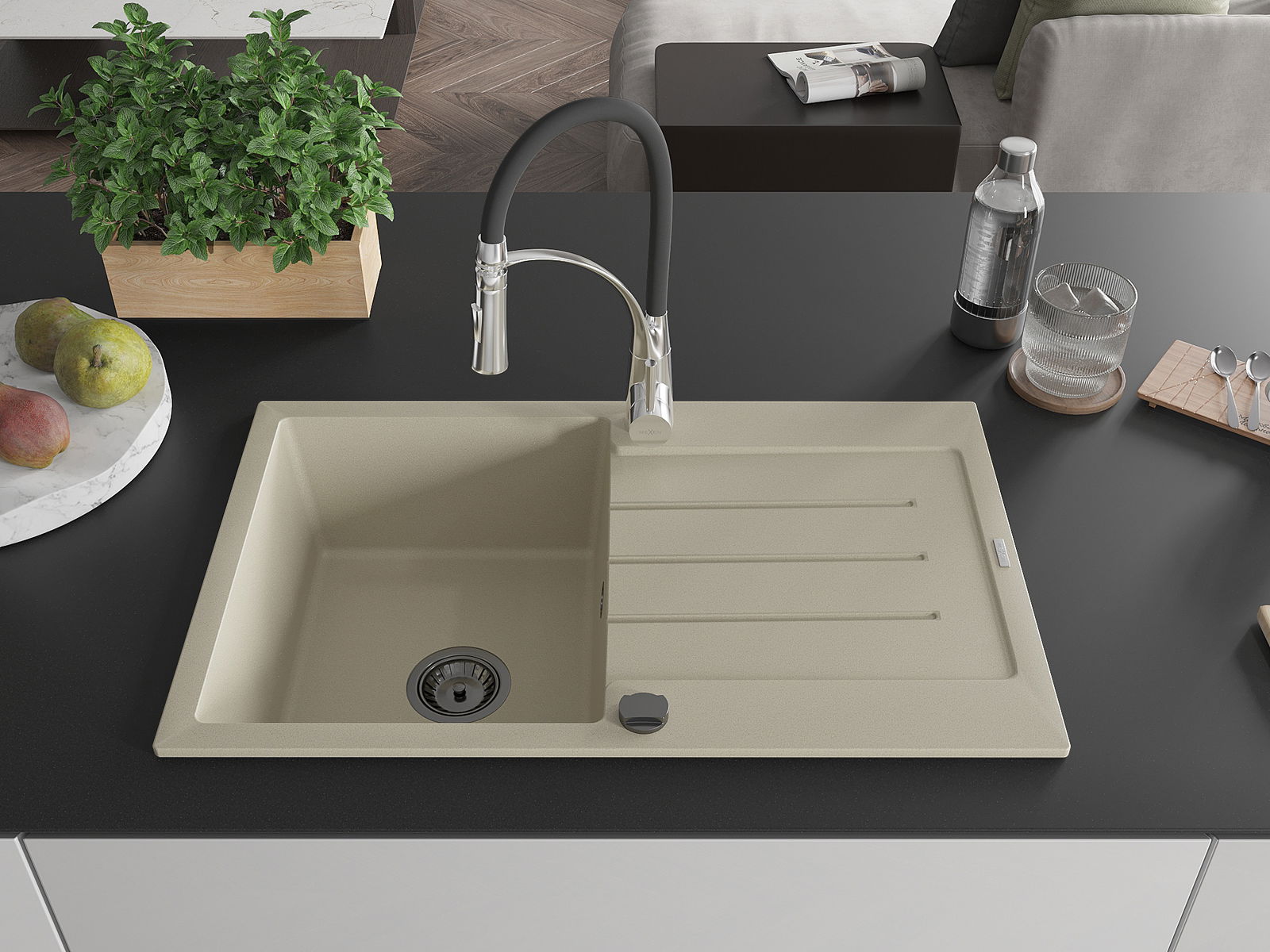 Zlewozmywak został wykonany z wysokiej jakości granitu. Stanowi eleganckie, a przede wszystkim praktyczne uzupełnienie każdej kuchni, niezależnie od jej stylu. Wysoka jakość oraz trwałość granitu zapewniają wieloletnie użytkowanie.