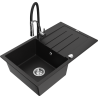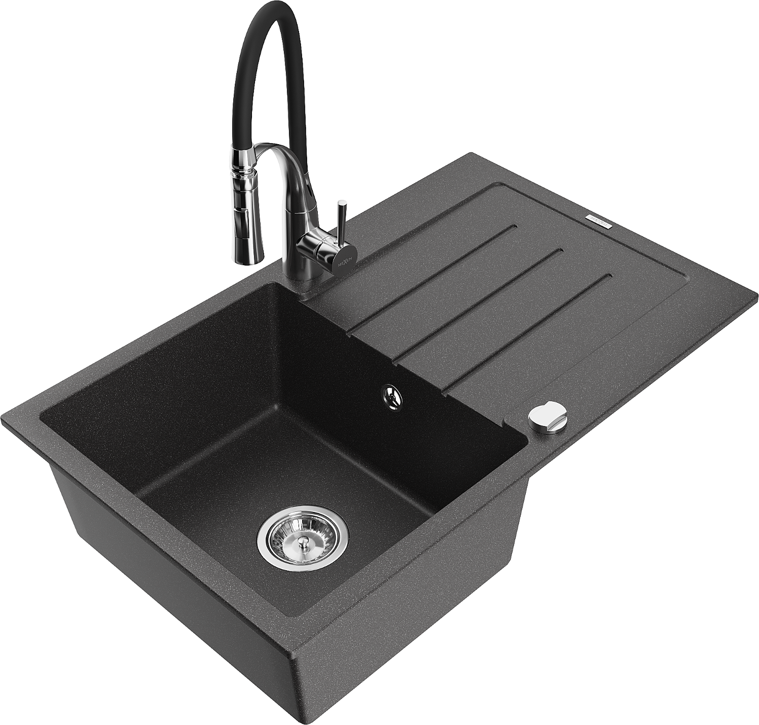 Mexen Bruno zlewozmywak granitowy 1-komorowy z ociekaczem i baterią kuchenną Aster, czarny nakrapiany - 6513-76-73450-07
