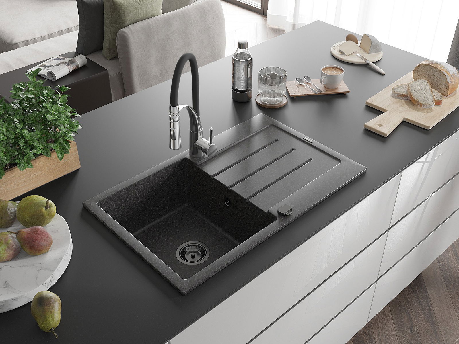 Zlewozmywak został wykonany z wysokiej jakości granitu. Stanowi eleganckie, a przede wszystkim praktyczne uzupełnienie każdej kuchni, niezależnie od jej stylu. Wysoka jakość oraz trwałość granitu zapewniają wieloletnie użytkowanie.