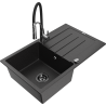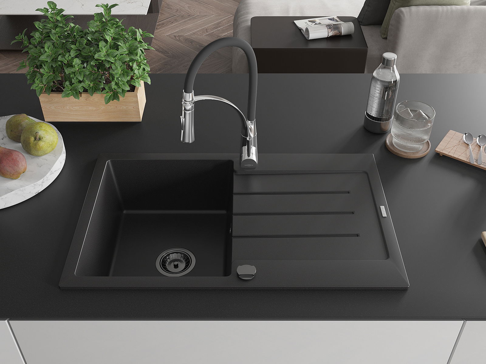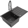 Mexen Bruno zlewozmywak granitowy 1-komorowy z ociekaczem i baterią kuchenną Aster, czarny - 6513-77-73450-07-B