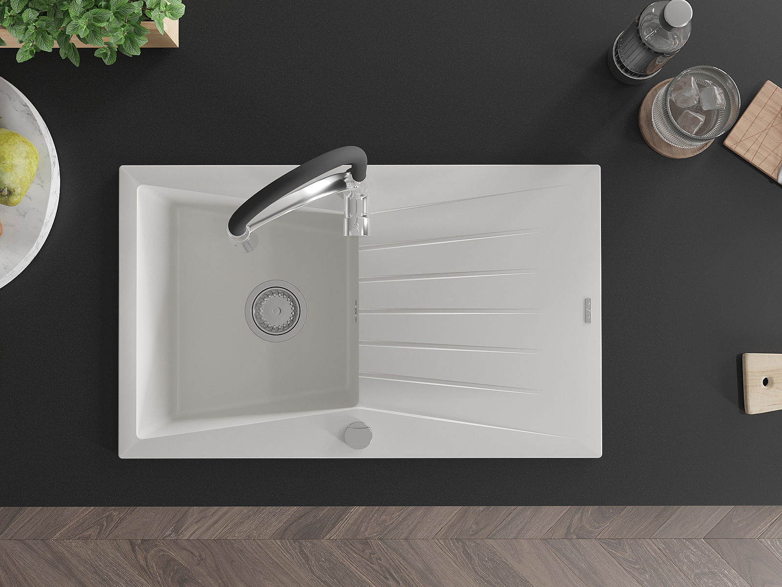 Powierzchnia zlewozmywaka jest odporna na plamy i przebarwienia, dzięki czemu jest łatwa w utrzymaniu czystości oraz zachowuje swój kolor przez długi czas użytkowania. Estetyczne i praktycznie uzupełnienie każdej kuchni.
