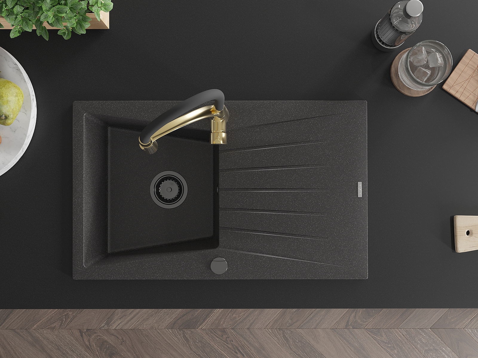 Zlewozmywak został wykonany z wysokiej jakości granitu. Stanowi eleganckie, a przede wszystkim praktyczne uzupełnienie każdej kuchni, niezależnie od jej stylu. Wysoka jakość oraz trwałość granitu zapewniają wieloletnie użytkowanie.