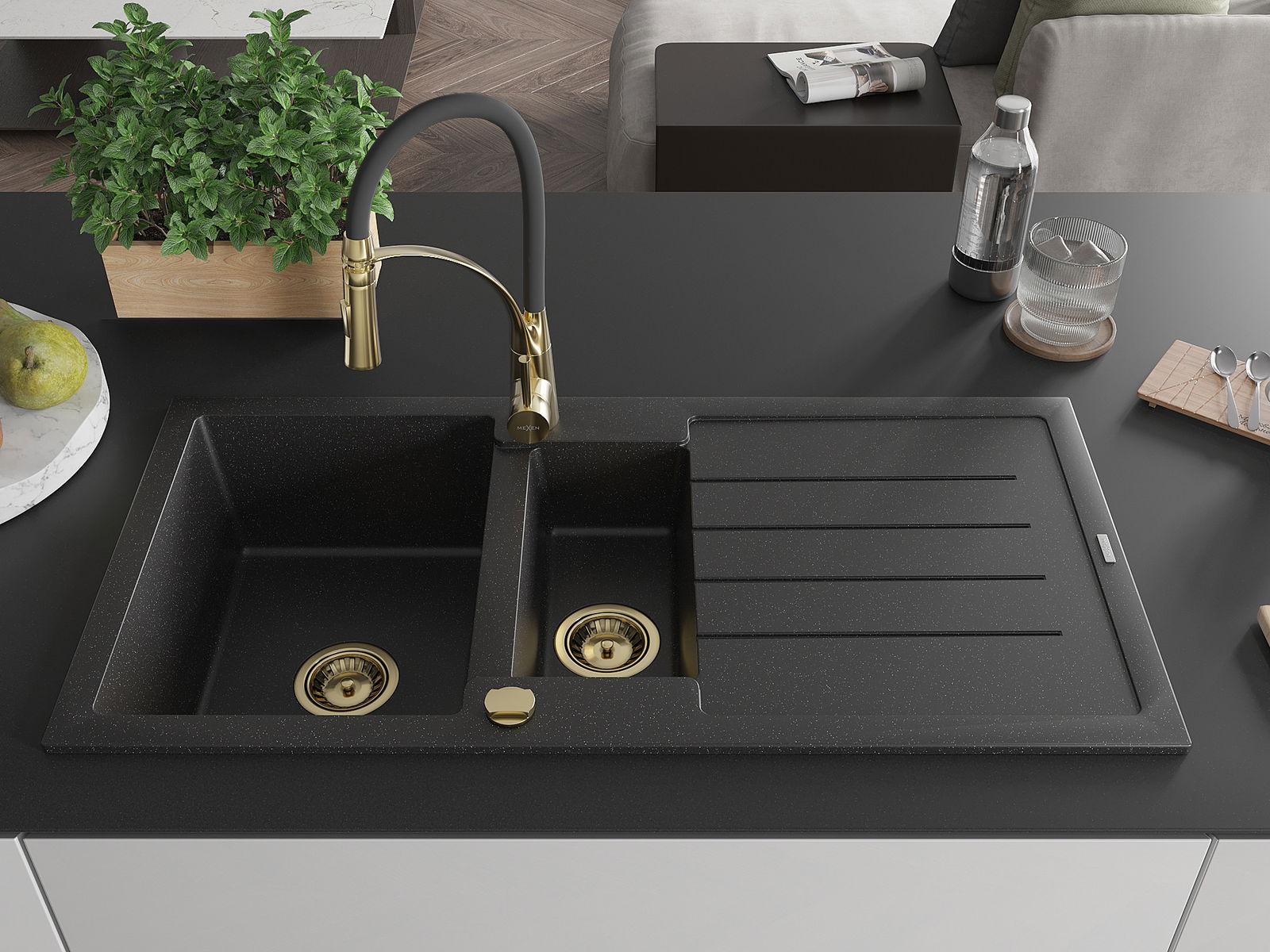 Zlewozmywak został wykonany z wysokiej jakości granitu. Stanowi eleganckie, a przede wszystkim praktyczne uzupełnienie każdej kuchni, niezależnie od jej stylu. Wysoka jakość oraz trwałość granitu zapewniają wieloletnie użytkowanie.