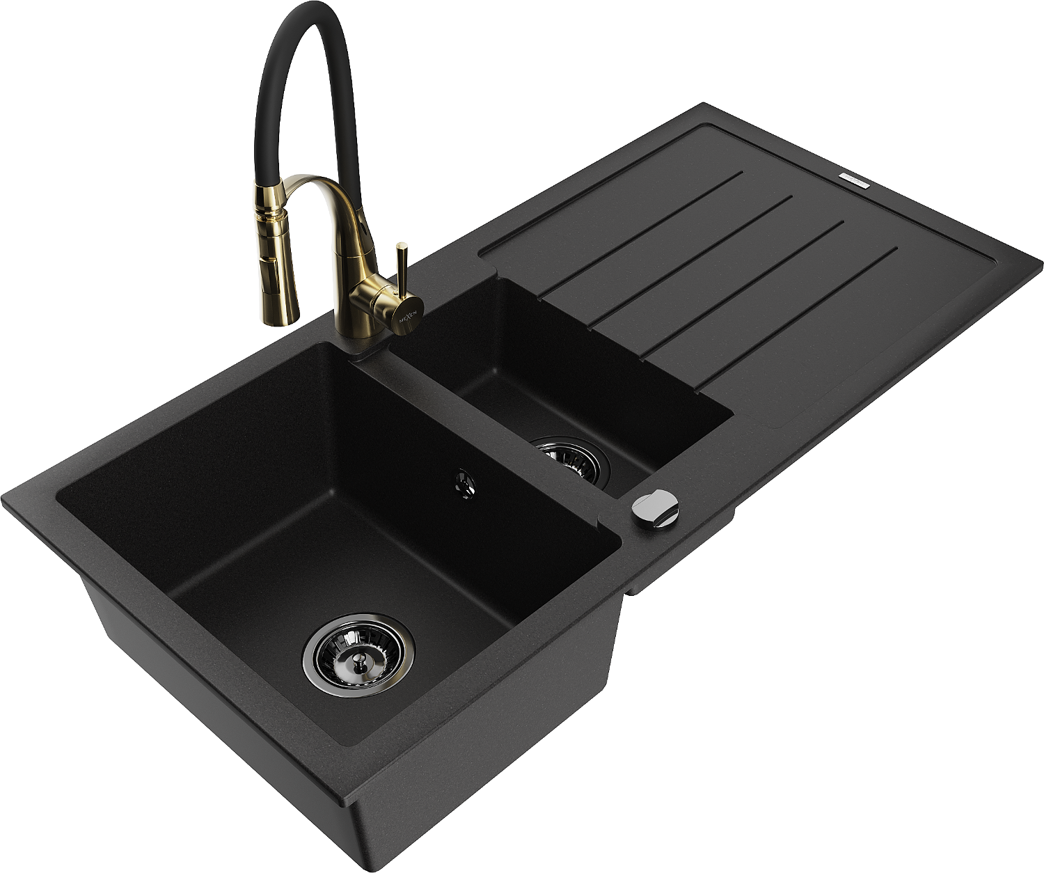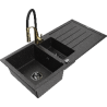 Mexen Andres zlewozmywak granitowy 1,5-komorowy z ociekaczem i baterią kuchenną Aster, czarny - 6515-77-73450-57-B