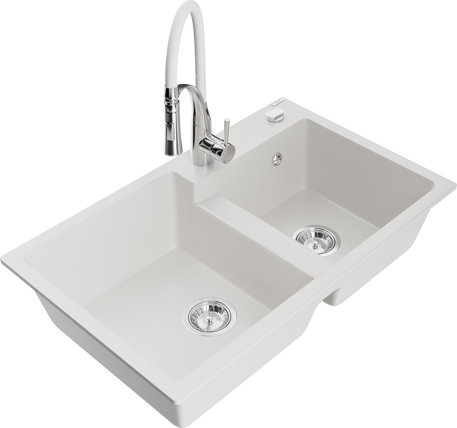 Mexen Tomas zlewozmywak granitowy 2-komorowy z baterią kuchenną Aster, biały - 6516-20-73450-02
