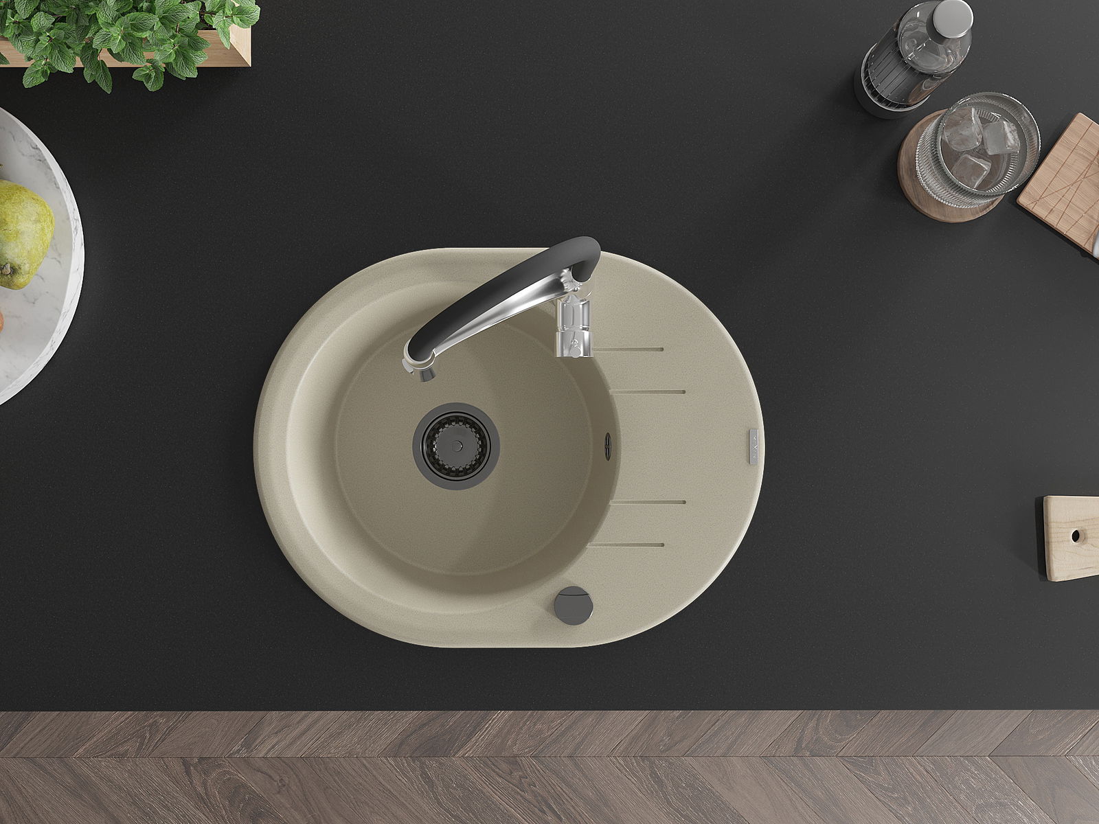 Zlewozmywak został wykonany z wysokiej jakości granitu. Stanowi eleganckie, a przede wszystkim praktyczne uzupełnienie każdej kuchni, niezależnie od jej stylu. Wysoka jakość oraz trwałość granitu zapewniają wieloletnie użytkowanie.