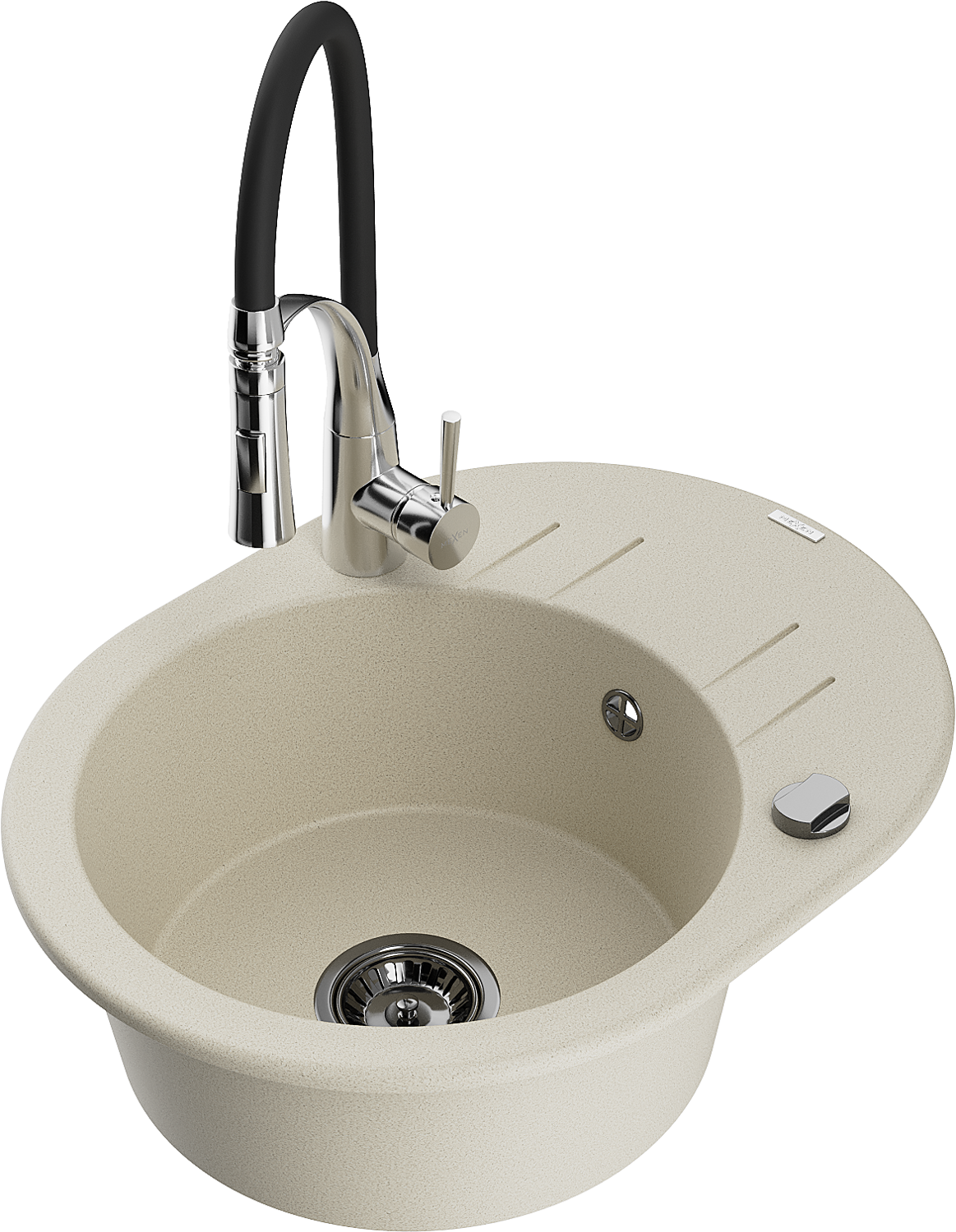 Mexen Kevin zlewozmywak granitowy 1-komorowy z ociekaczem i baterią kuchenną Aster, beżowy - 6517-69-73450-07-B