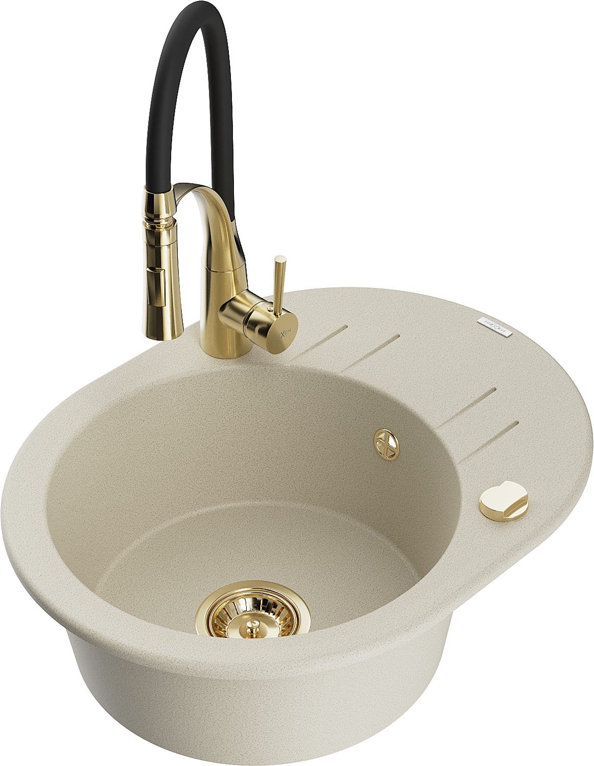 Mexen Kevin zlewozmywak granitowy 1-komorowy z ociekaczem i baterią kuchenną Aster, beżowy - 6517-69-73450-57-G