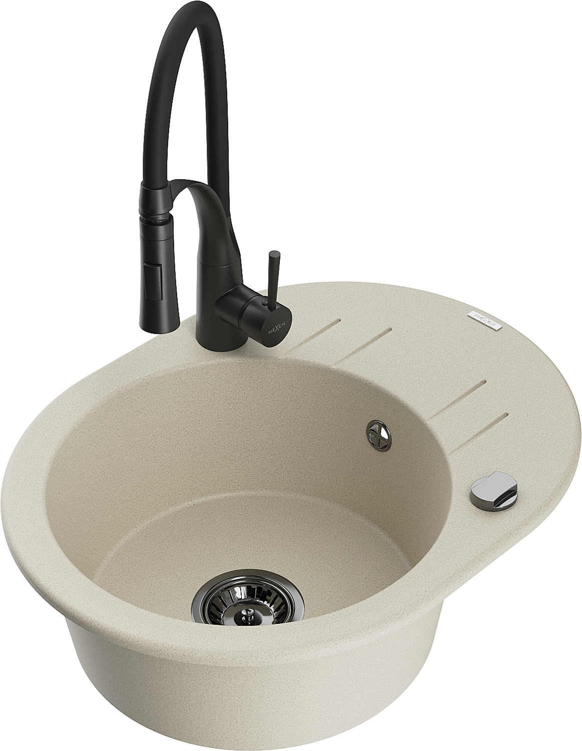 Mexen Kevin zlewozmywak granitowy 1-komorowy z ociekaczem i baterią kuchenną Aster, beżowy - 6517-69-73450-70-B