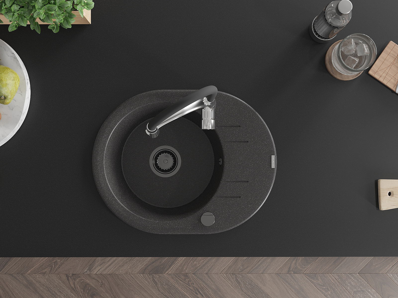 Zlewozmywak został wykonany z wysokiej jakości granitu. Stanowi eleganckie, a przede wszystkim praktyczne uzupełnienie każdej kuchni, niezależnie od jej stylu. Wysoka jakość oraz trwałość granitu zapewniają wieloletnie użytkowanie.