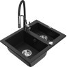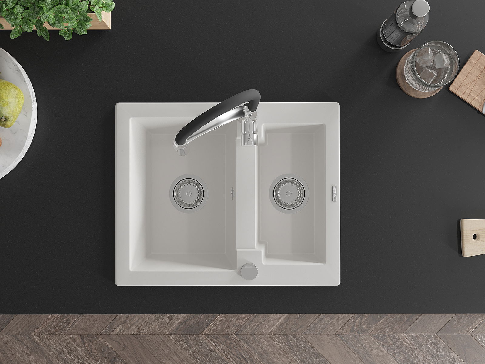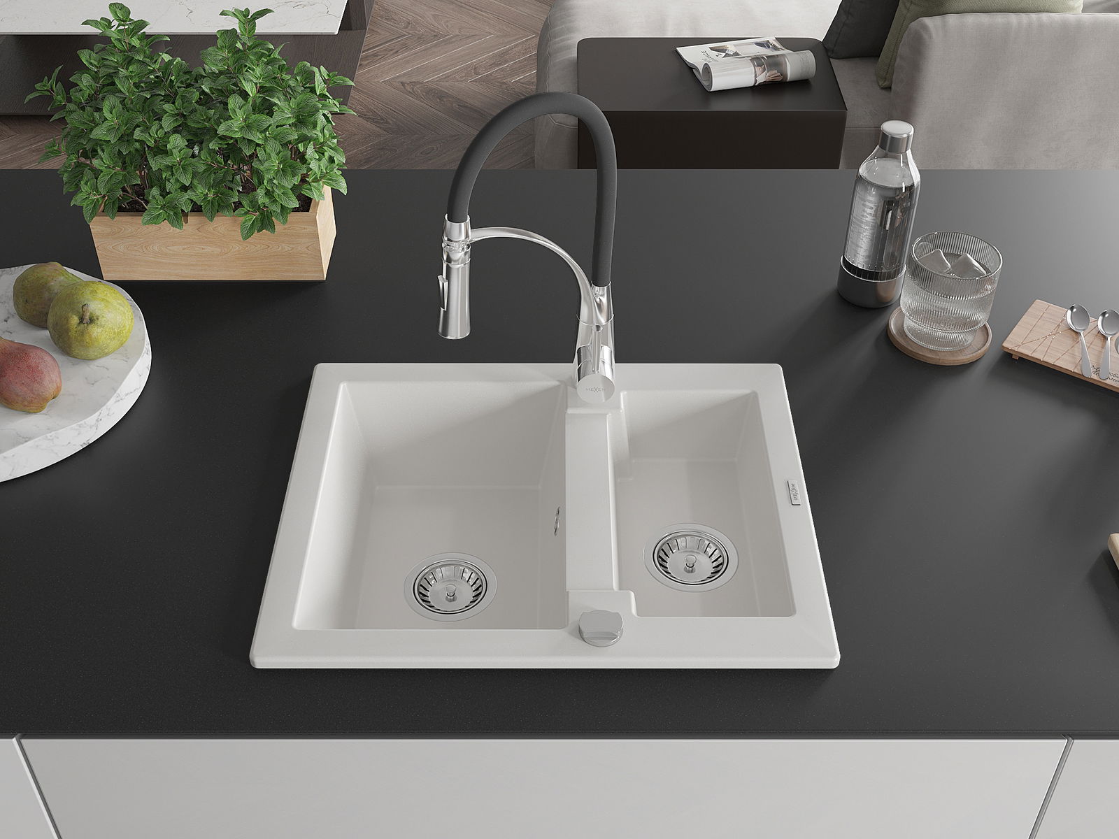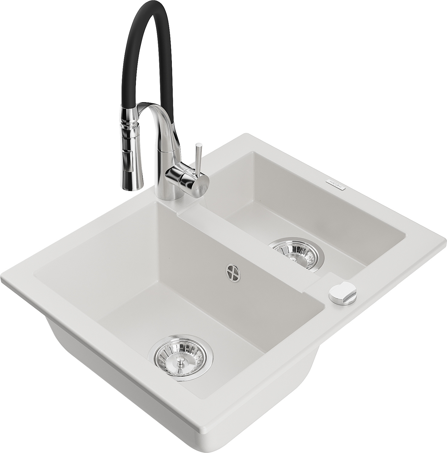 Mexen Carlos zlewozmywak granitowy 1,5-komorowy z baterią kuchenną Aster, biały - 6518-20-73450-07