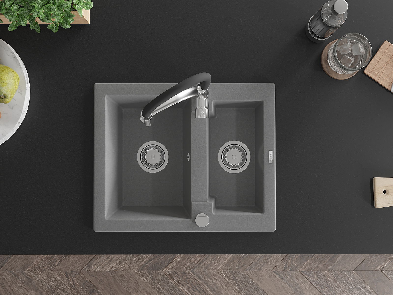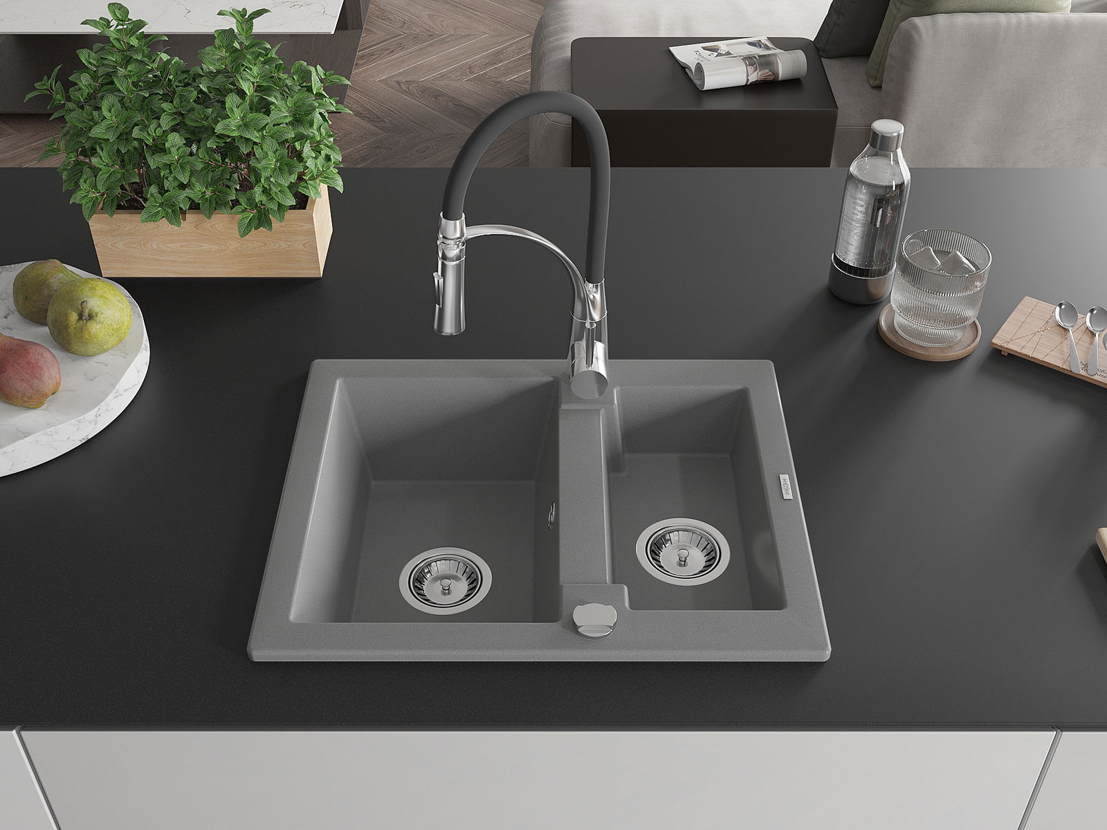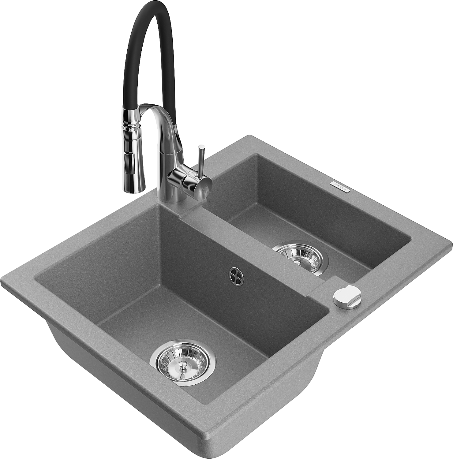 Mexen Carlos zlewozmywak granitowy 1,5-komorowy z baterią kuchenną Aster, szary - 6518-71-73450-07