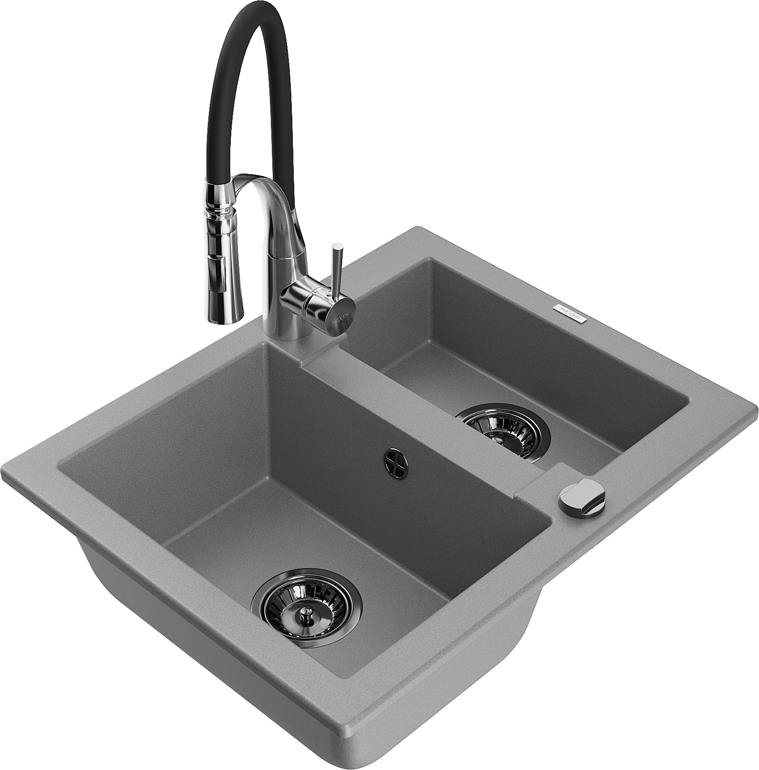 Mexen Carlos zlewozmywak granitowy 1,5-komorowy z baterią kuchenną Aster, szary - 6518-71-73450-07-B