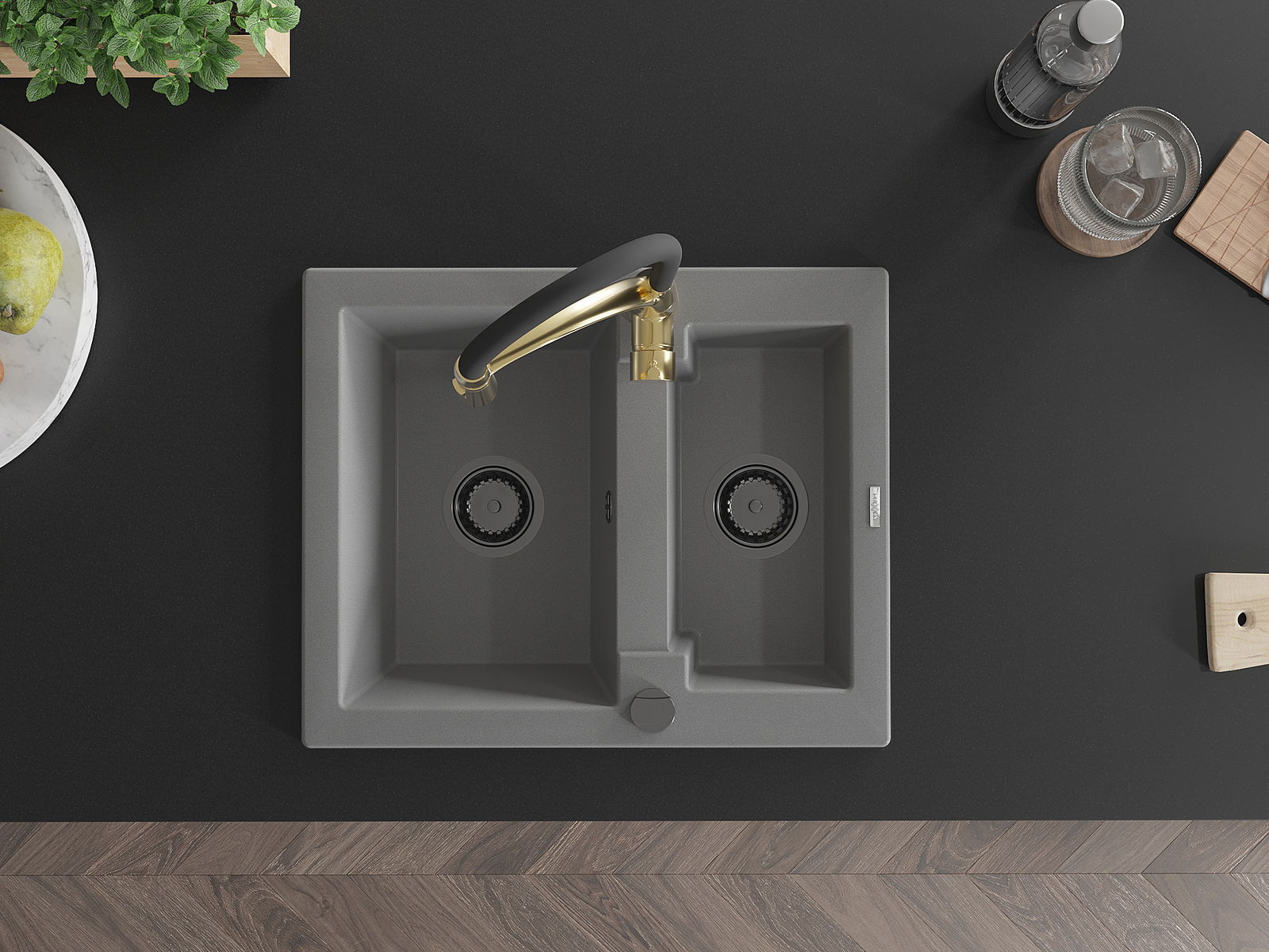 Mexen Carlos zlewozmywak granitowy 1,5-komorowy z baterią kuchenną Aster, szary - 6518-71-73450-57-B