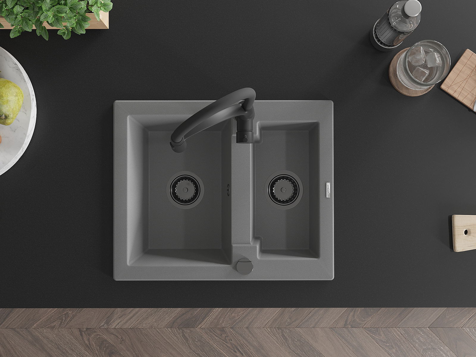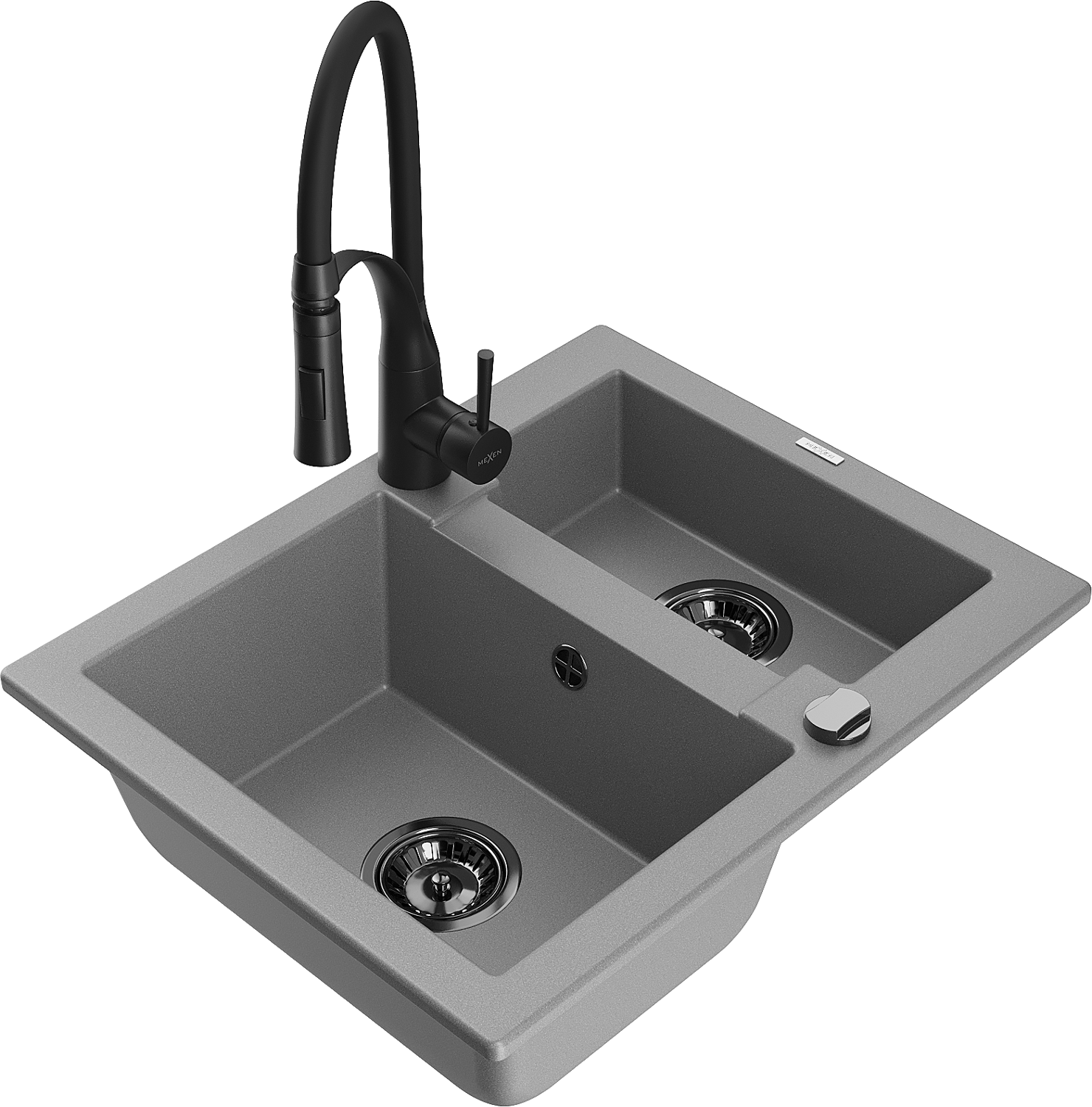 Mexen Carlos zlewozmywak granitowy 1,5-komorowy z baterią kuchenną Aster, szary - 6518-71-73450-70-B