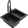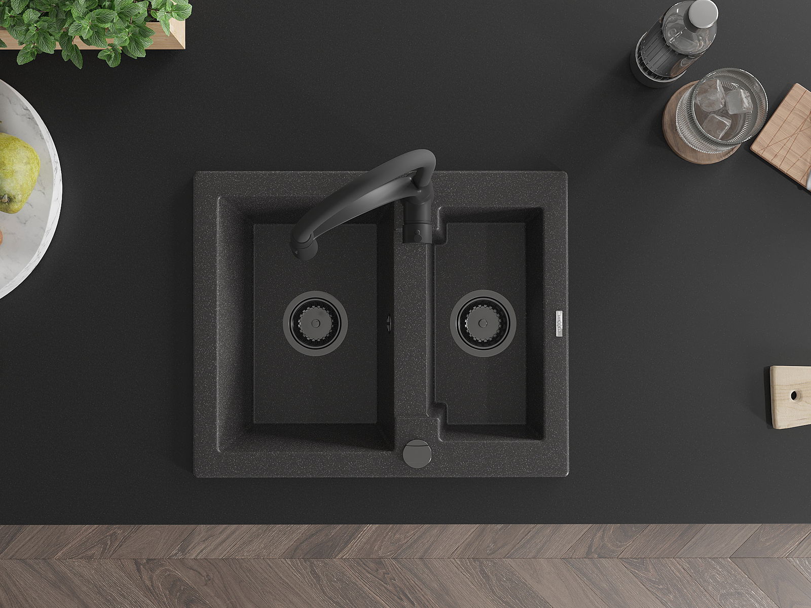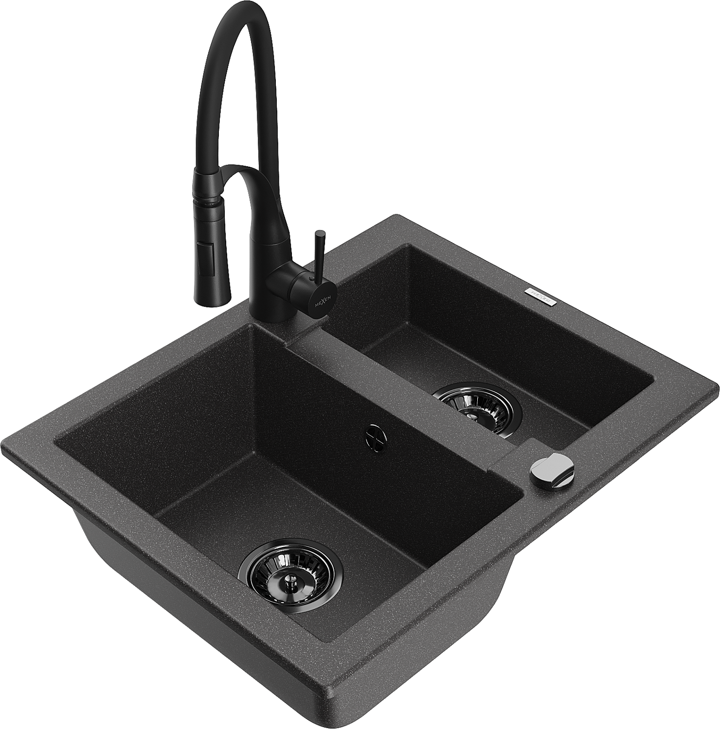 Mexen Carlos zlewozmywak granitowy 1,5-komorowy z baterią kuchenną Aster, czarny nakrapiany - 6518-76-73450-70-B