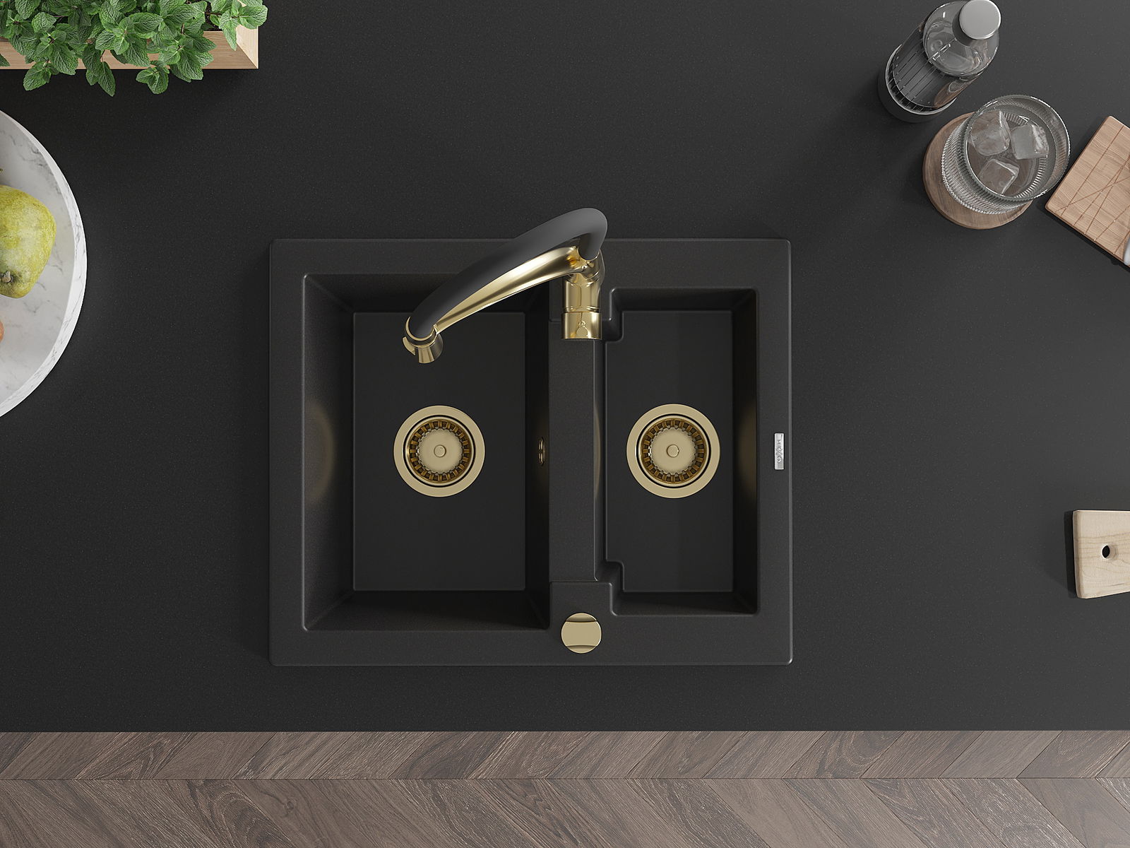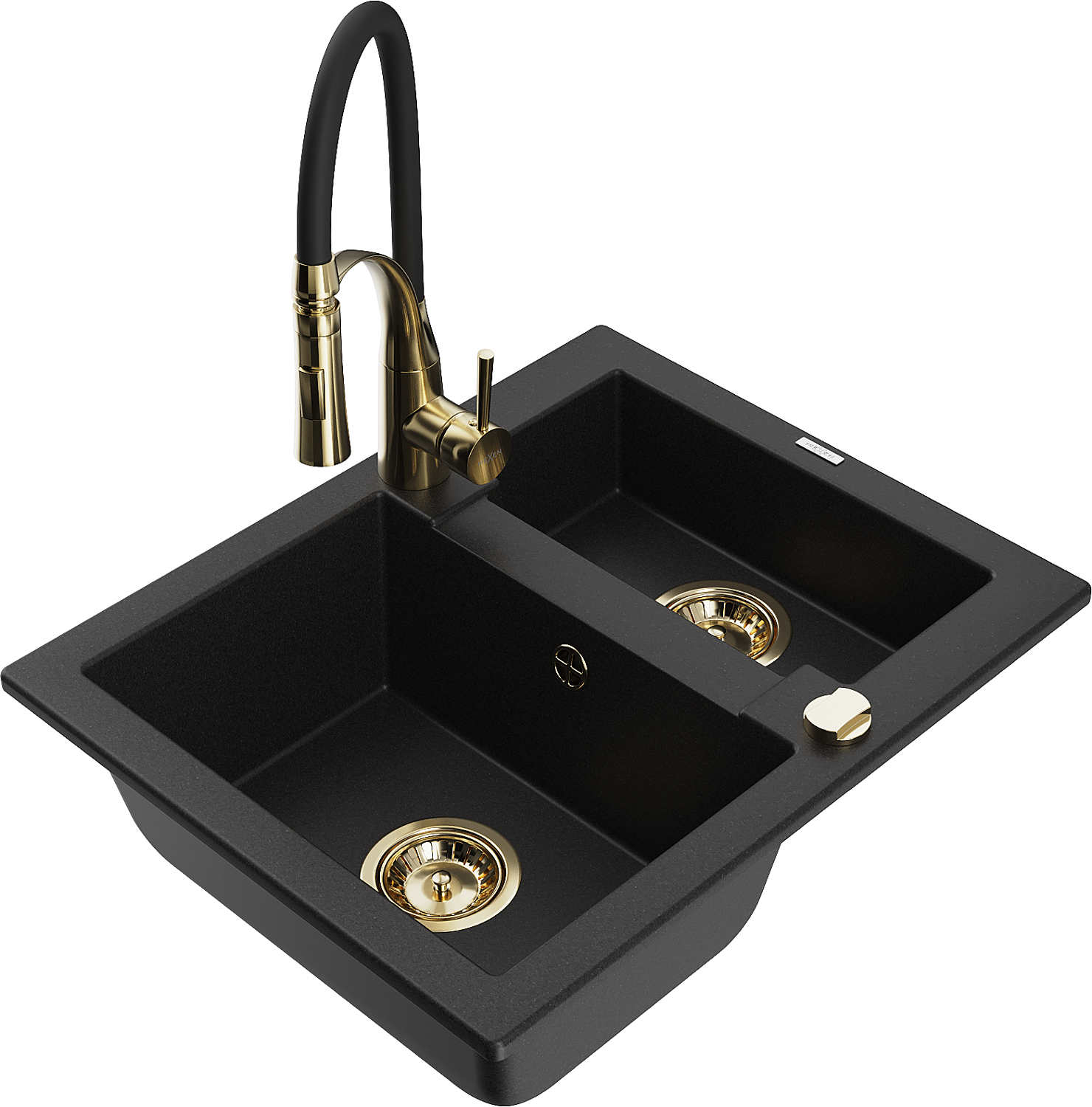 Mexen Carlos zlewozmywak granitowy 1,5-komorowy z baterią kuchenną Aster, czarny - 6518-77-73450-57-G