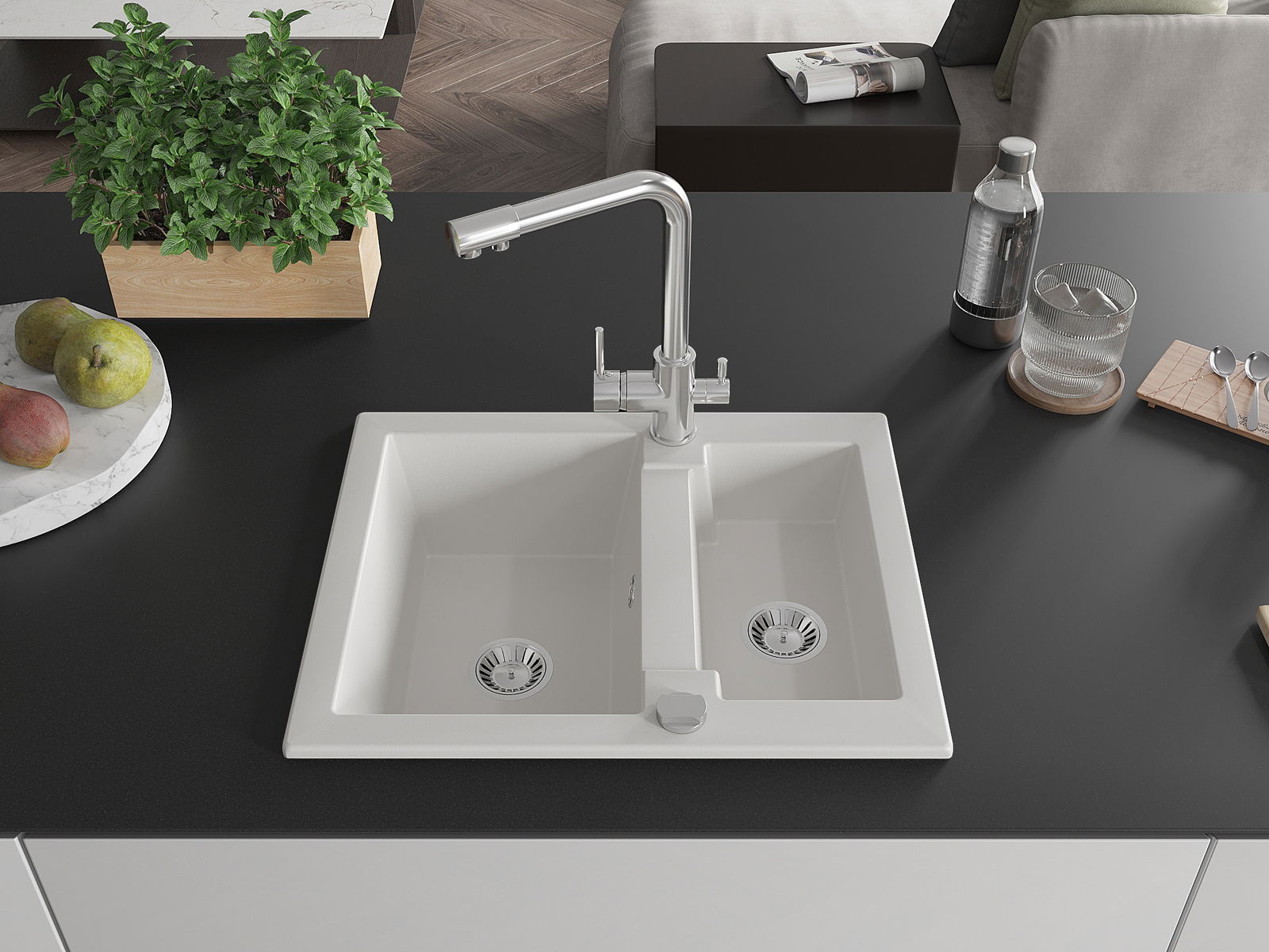 Zlewozmywak został wykonany z wysokiej jakości granitu. Stanowi eleganckie, a przede wszystkim praktyczne uzupełnienie każdej kuchni, niezależnie od jej stylu. Wysoka jakość oraz trwałość granitu zapewniają wieloletnie użytkowanie.