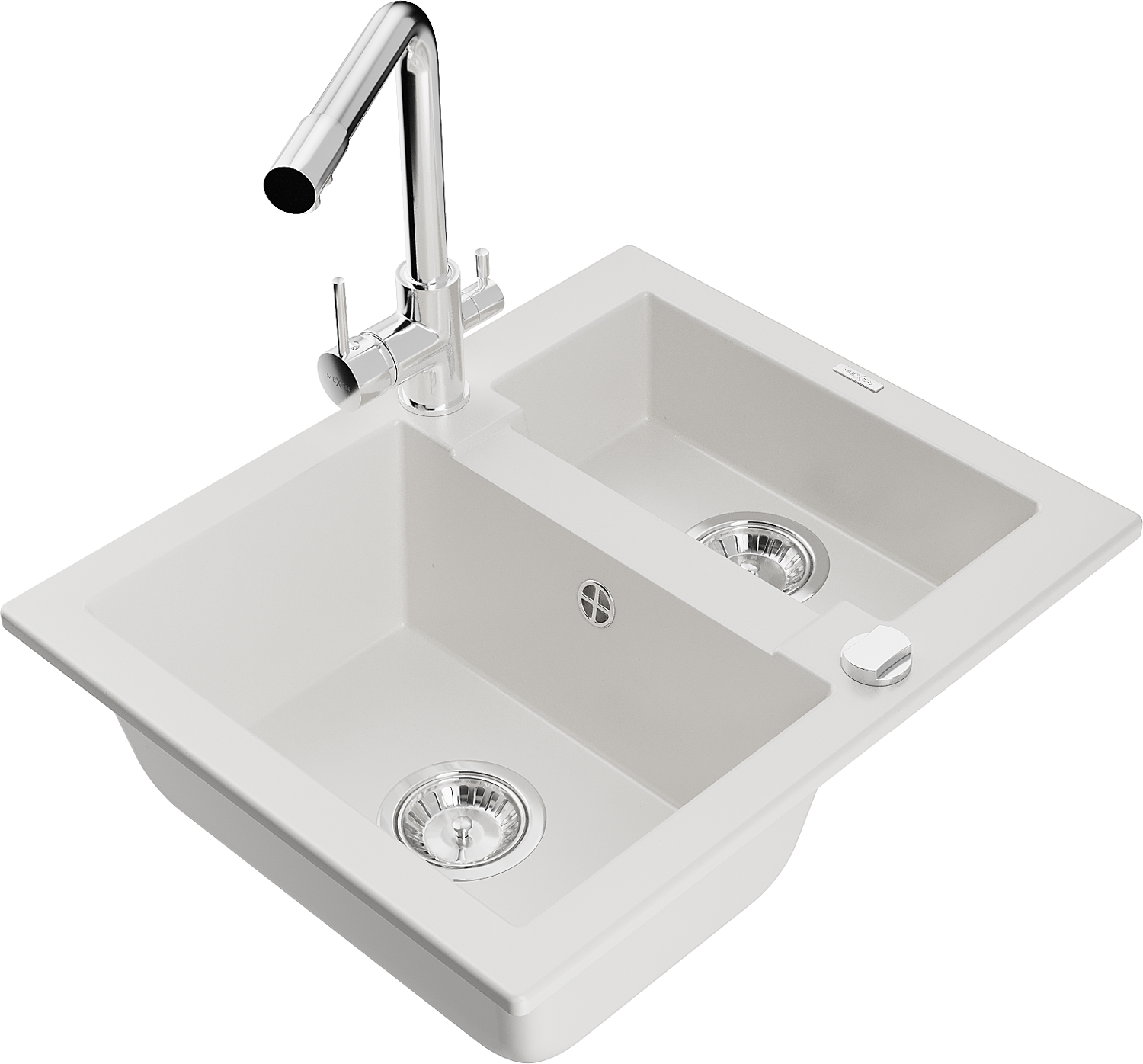 Mexen Carlos zlewozmywak granitowy 1,5-komorowy z baterią kuchenną Duero, biały - 6518-20-671600-00