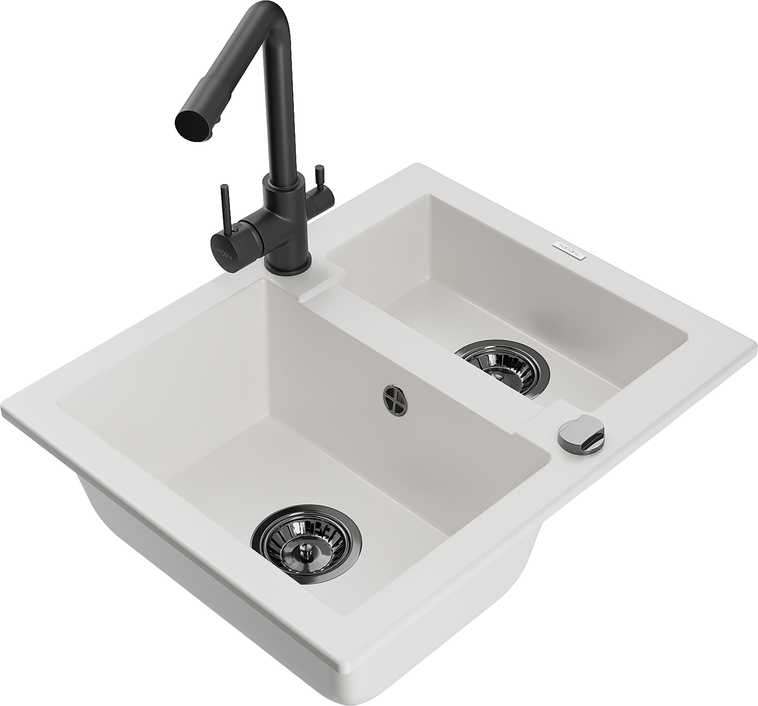 Mexen Carlos zlewozmywak granitowy 1,5-komorowy z baterią kuchenną Duero, biały - 6518-20-671600-70