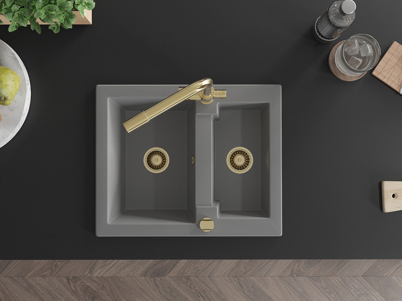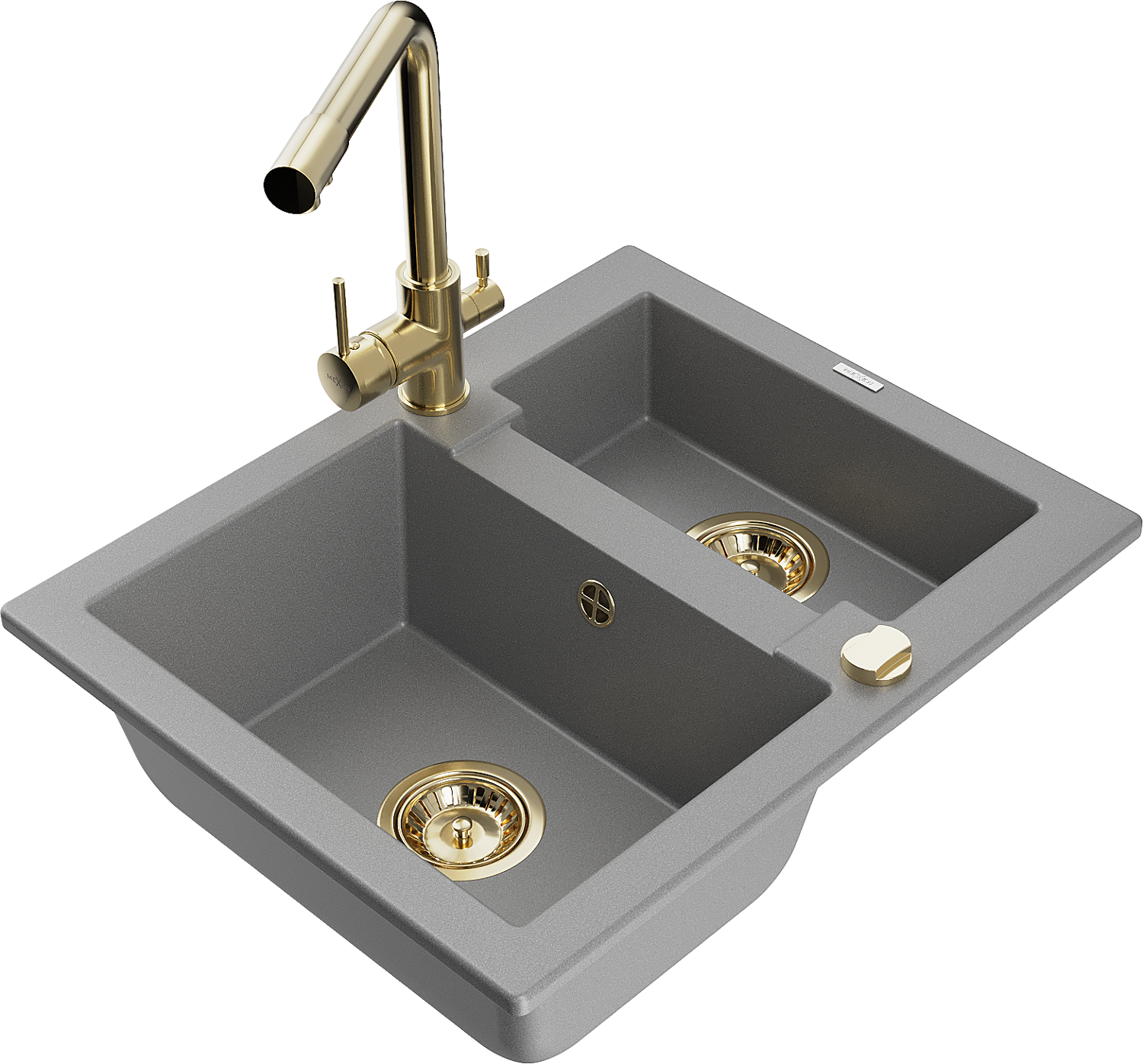 Mexen Carlos zlewozmywak granitowy 1,5-komorowy z baterią kuchenną Duero, szary - 6518-71-671600-50